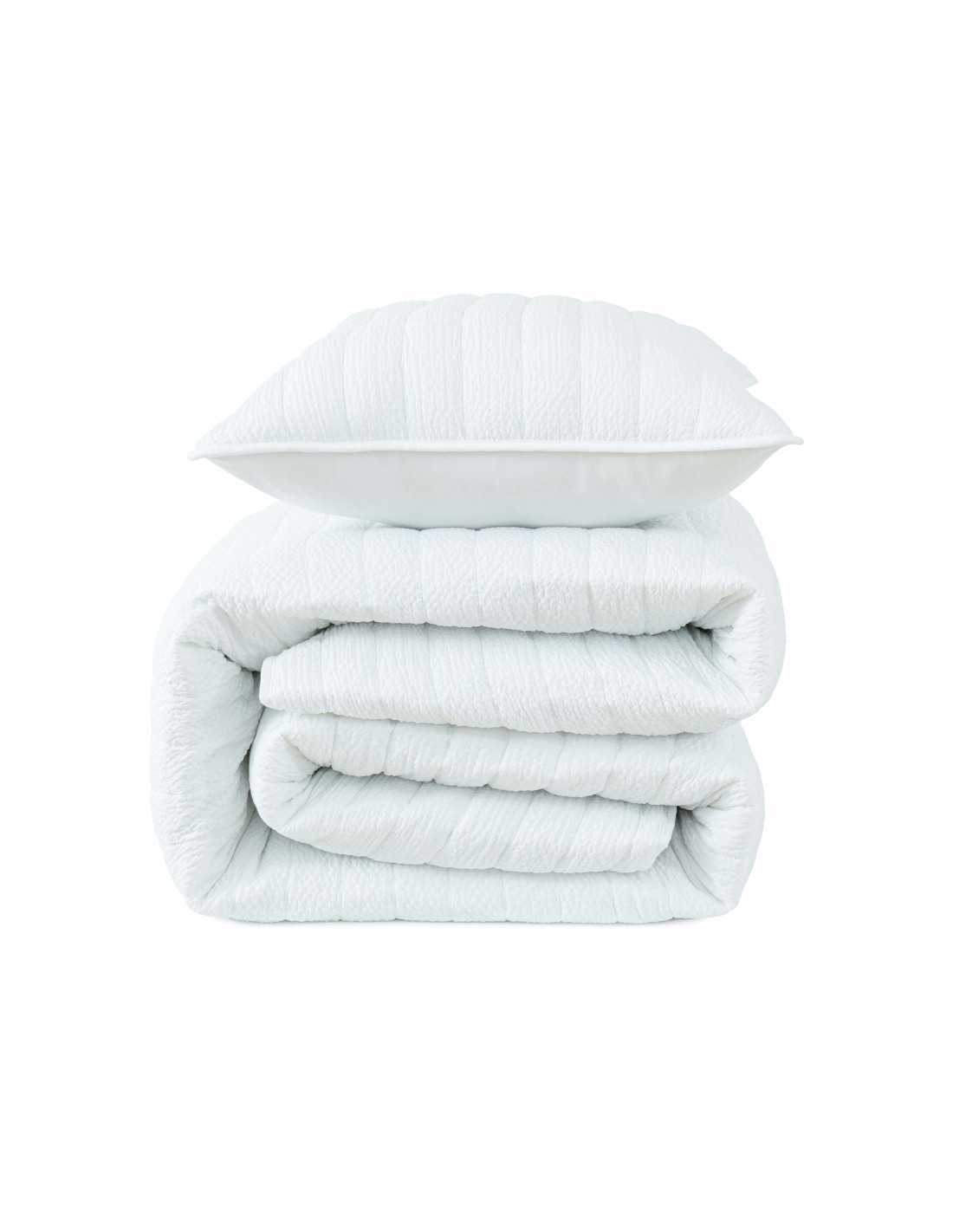 Colcha bouti en cor branco com enchimento leve para primavera e verão, com um design bordado em riscas em relevo, que aporta classe e elegância ao seu quarto.