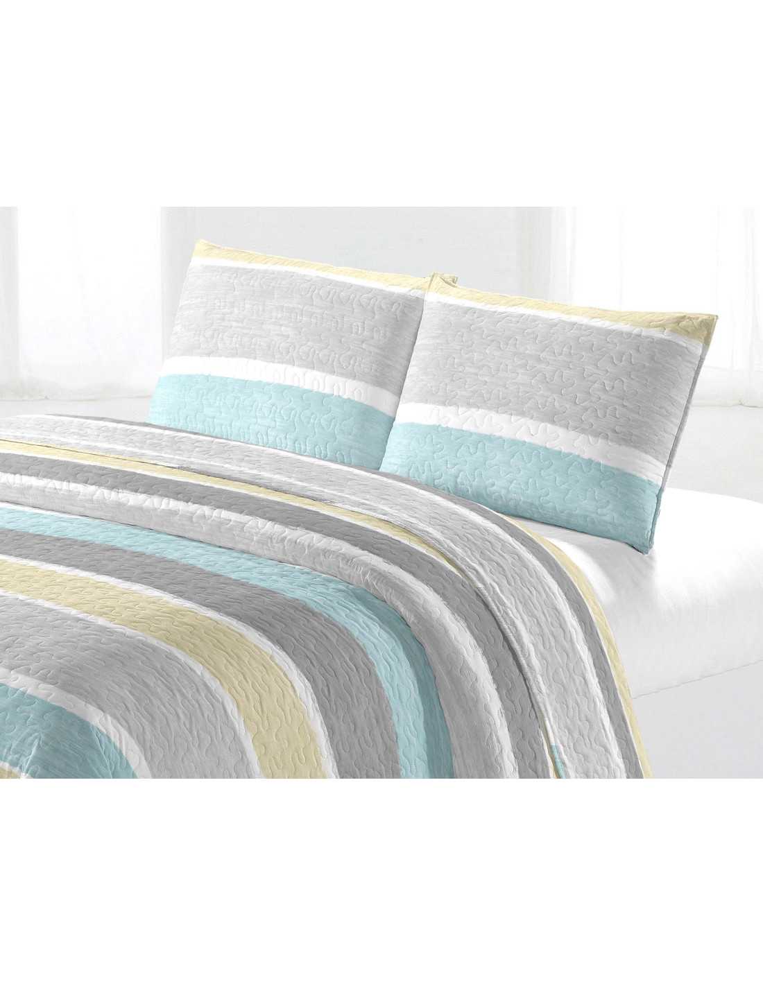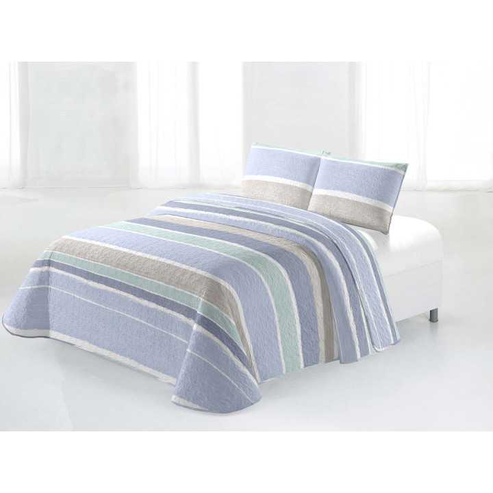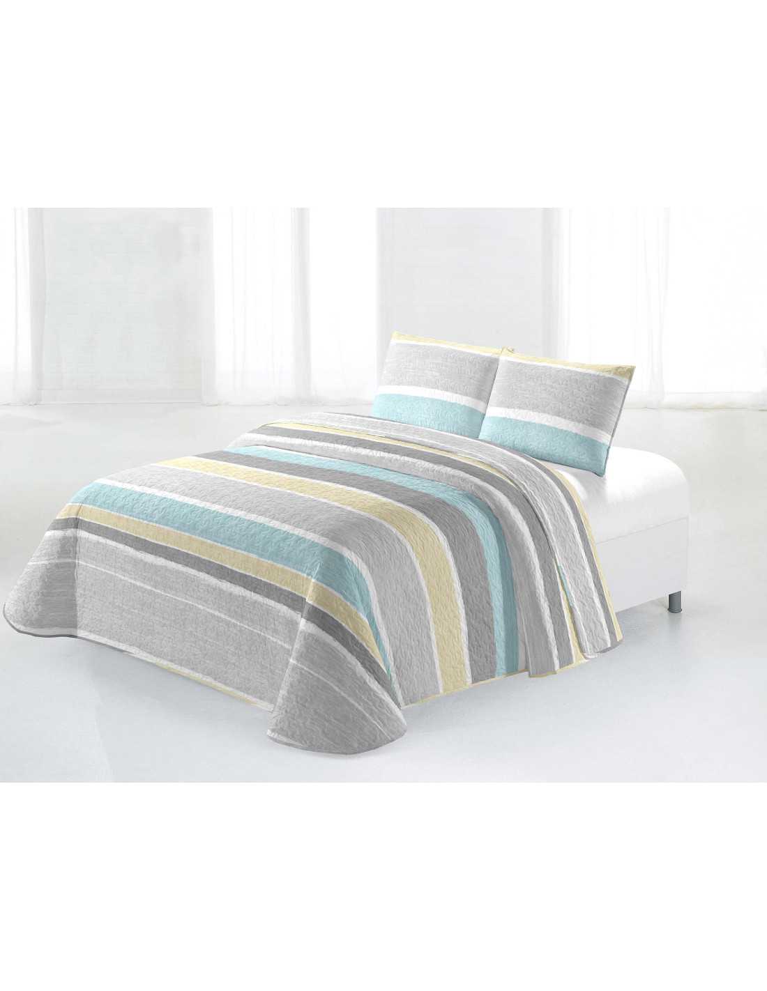 Colcha reversível com estampado às riscas em vários tons. Um design moderno e elegante para o seu quarto.