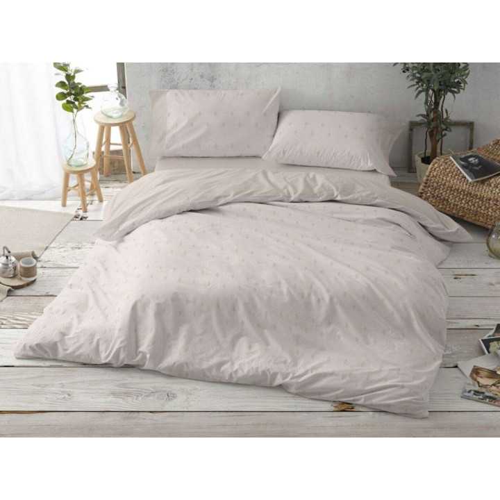 O modelo Ternua da Burrito Blanco é um conjunto de capa de edredão em flanela com 3 peças e um design geométrico com losangos e linhas em tons de bege. Um modelo muito quente e confortável.