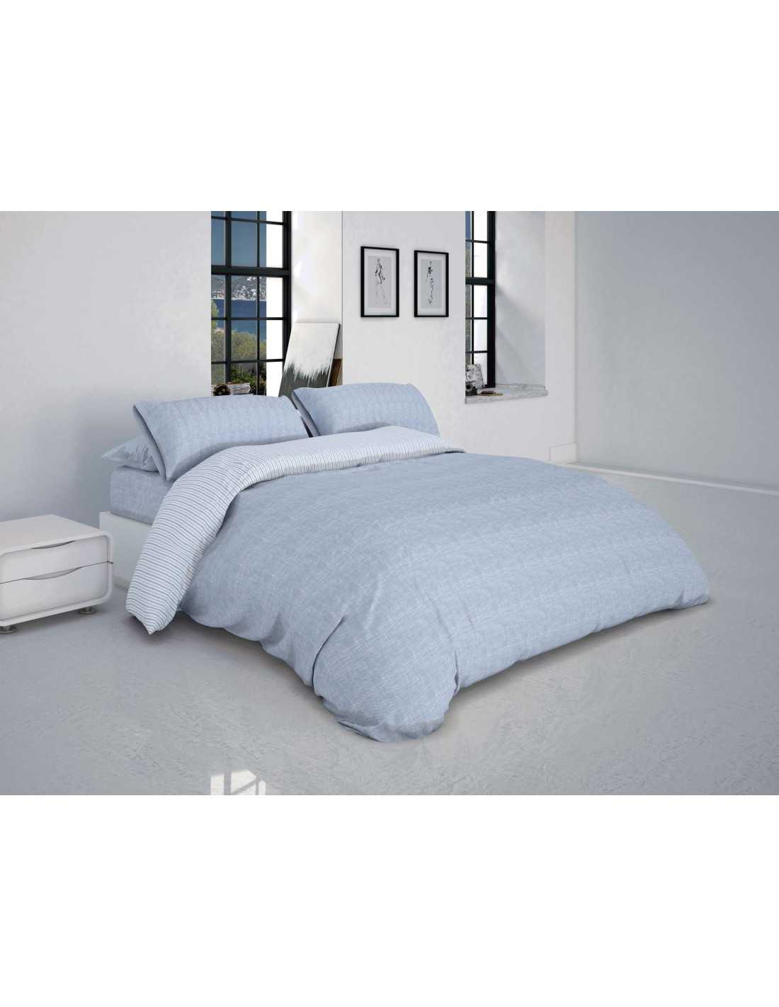 O modelo Albia é uma capa de edredão de 3 peças com um desenho muito decorativo que imita o linho e tem riscas no interior. Disponível em três tonalidades diferentes para que você possa escolher a que mais combina com você. Seu design é perfeito para dar um novo toque ao seu quarto.