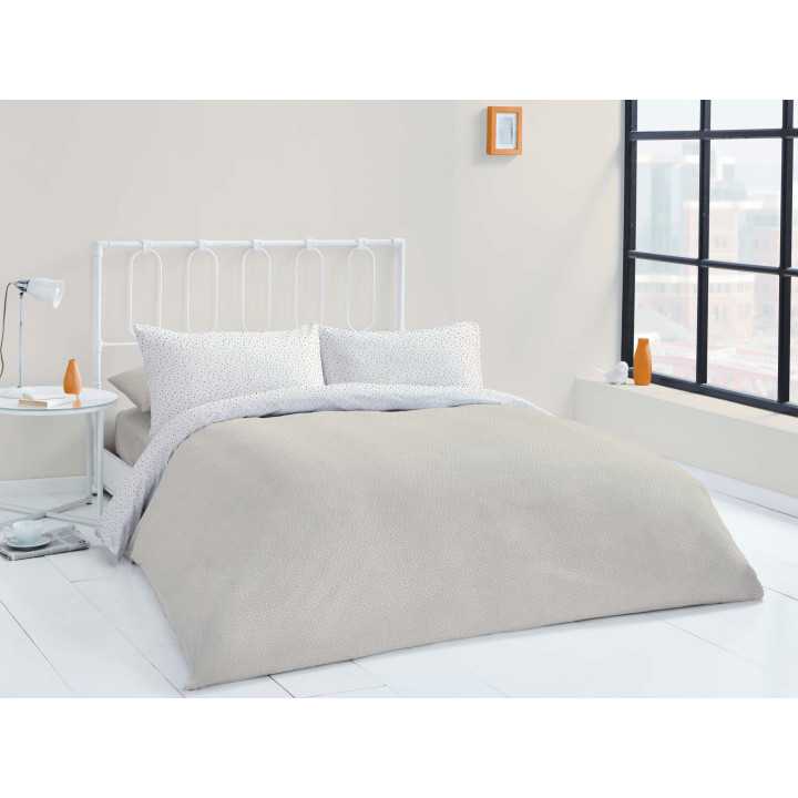 O modelo Paris é uma capa de edredão reversível com um design de bolinhas simples e moderno. Disponível em três tons diferentes para que possa escolher o que mais lhe convém. Seu design é perfeito para dar um novo toque ao seu quarto. Inclui lençol e fronha. Descubra a nova coleção de capas de edredão, uma grande variedade de modelos para que possa escolher o que mais lhe convém e todos eles com qualidade 100% garantida, longa duração, não faz nós nem bolas. Tecido reversível muito agradável ao tacto e muito fácil de engomar.