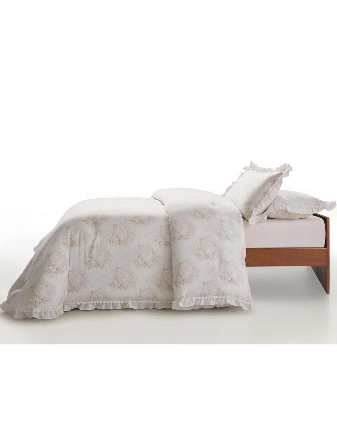 Conjunto de edredão extra macio com estampado toile de jouy, capas de almofada 50x70 a condizer e folho duplo. Uma colcha muito decorativa para esta estação.