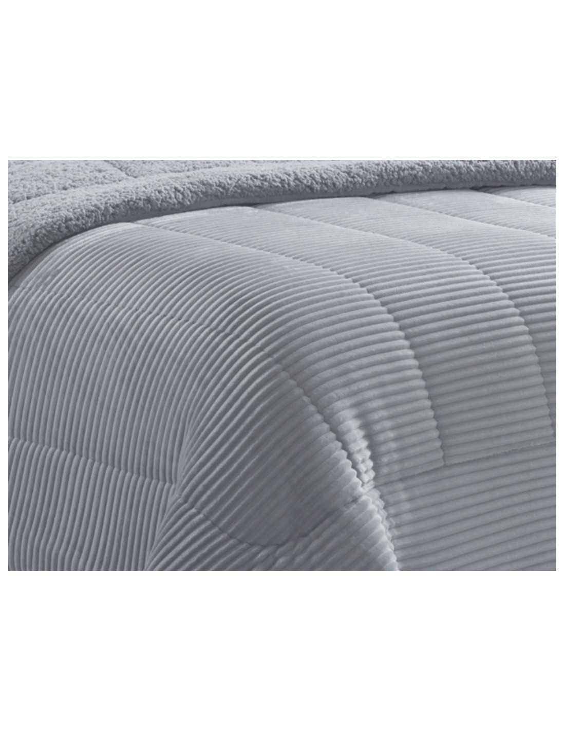 Edredão de tecido de flanela com verso em sherpa, com uma gramagem total de 580 gramas. Um edredão conforter com grande capacidade calorífica.
