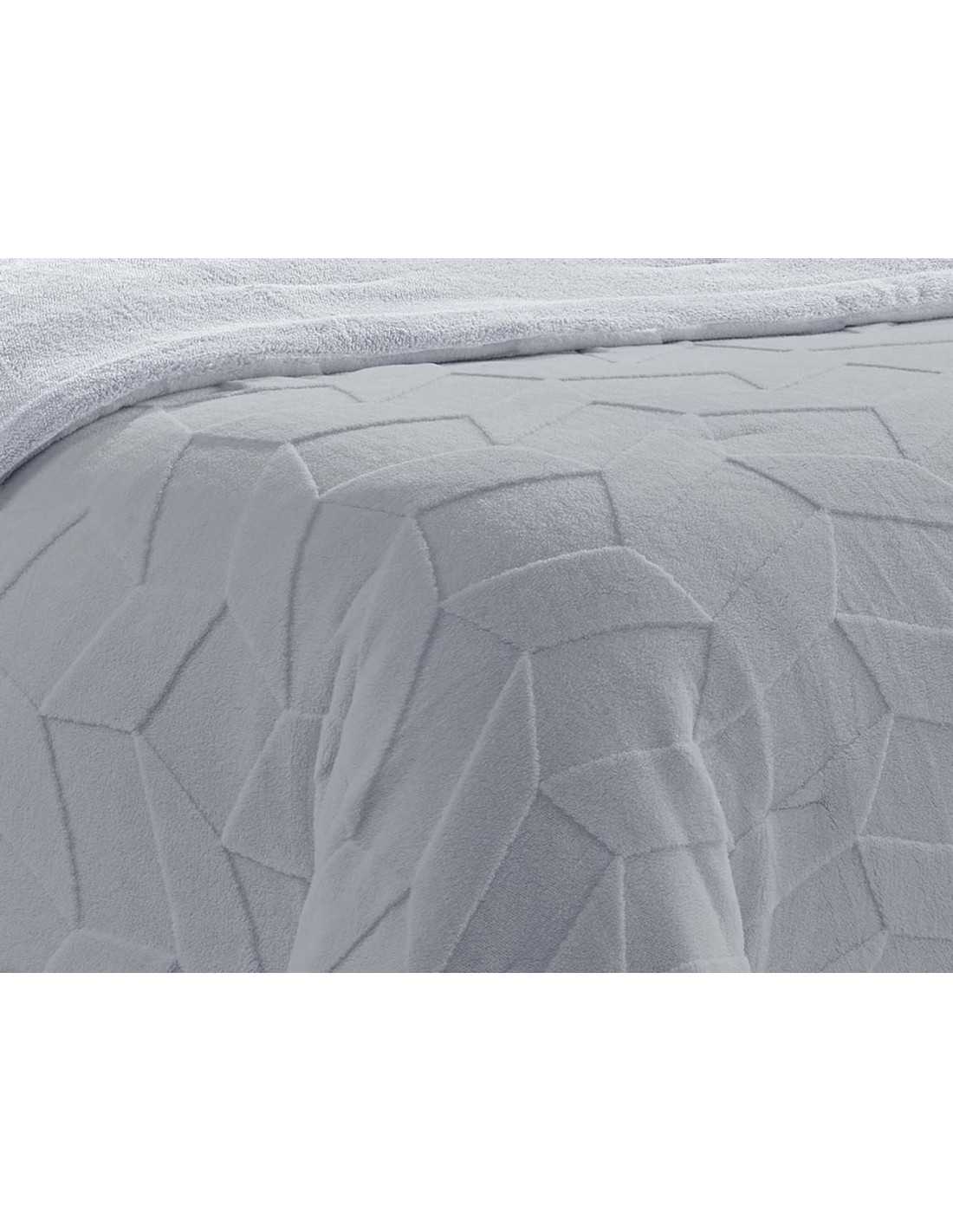 O tecido superior é de flanela com formas em relevo e, no verso, conta com sherpa, que juntamente com o enchimento proporciona uma gramagem muito elevada para te isolar do frio e poupar no aquecimento.