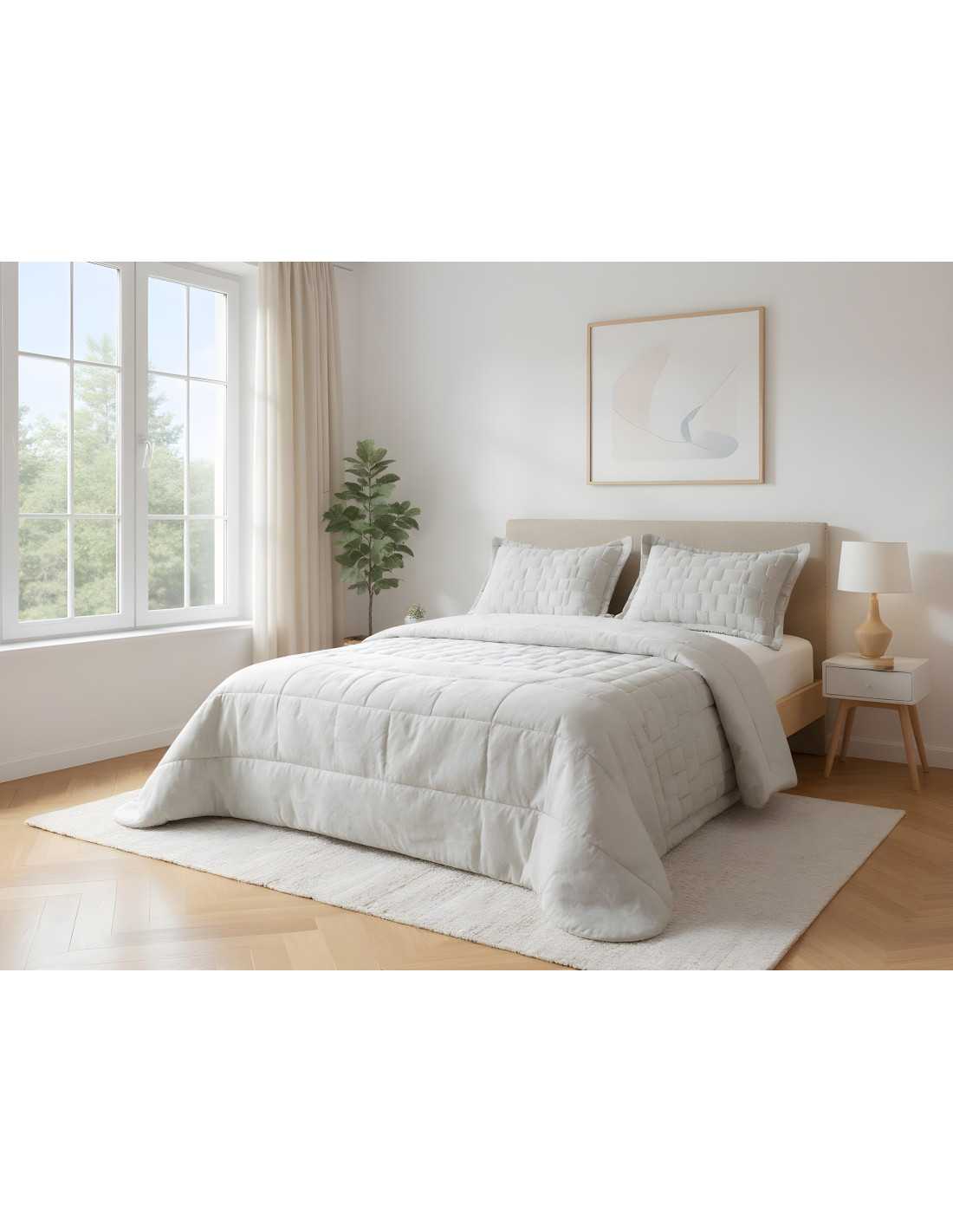 Cama de 180 cm: 280 x 270 cm. Inclui duas capas de almofada de 50 x 70 cm.