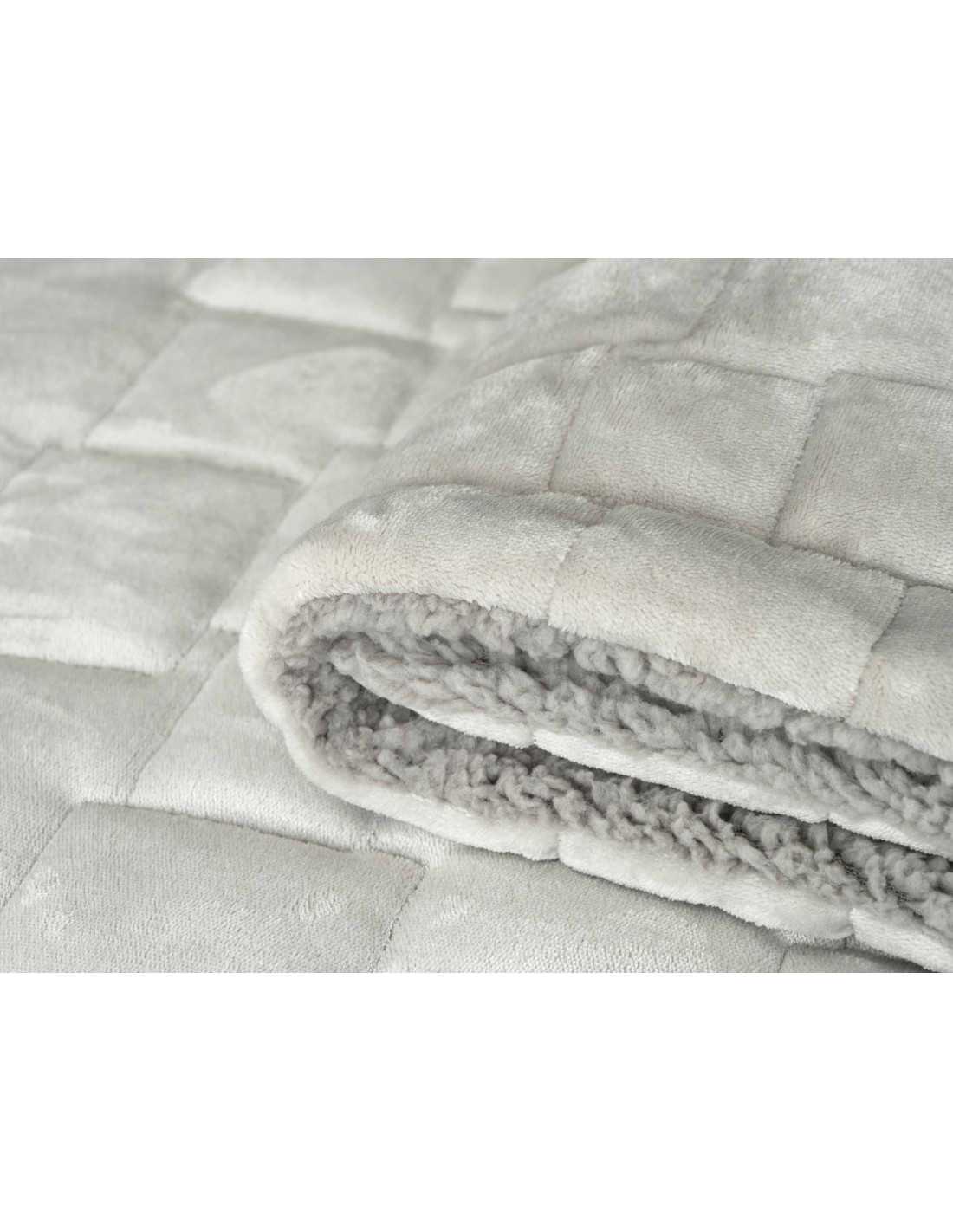 Um edredão coralina simples, muito macio e quente, feito com enchimento extramacio para maior alívio e forro de sherpa, acolchoado com riscas e uma faixa central formando formas geométricas.
