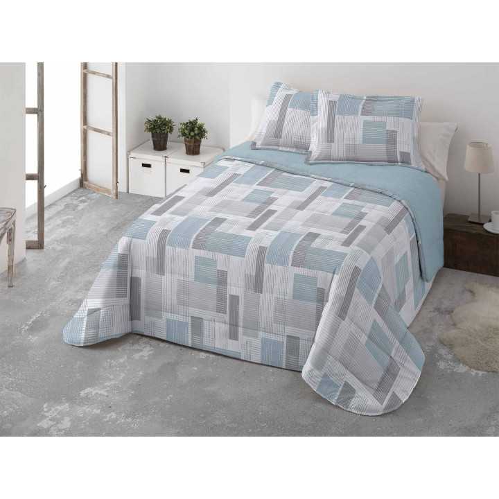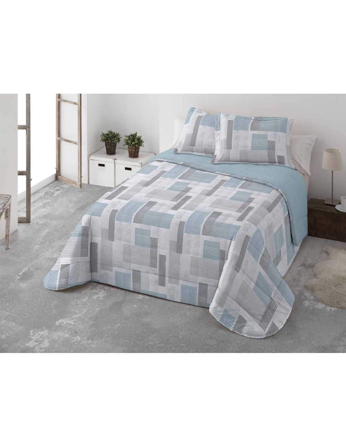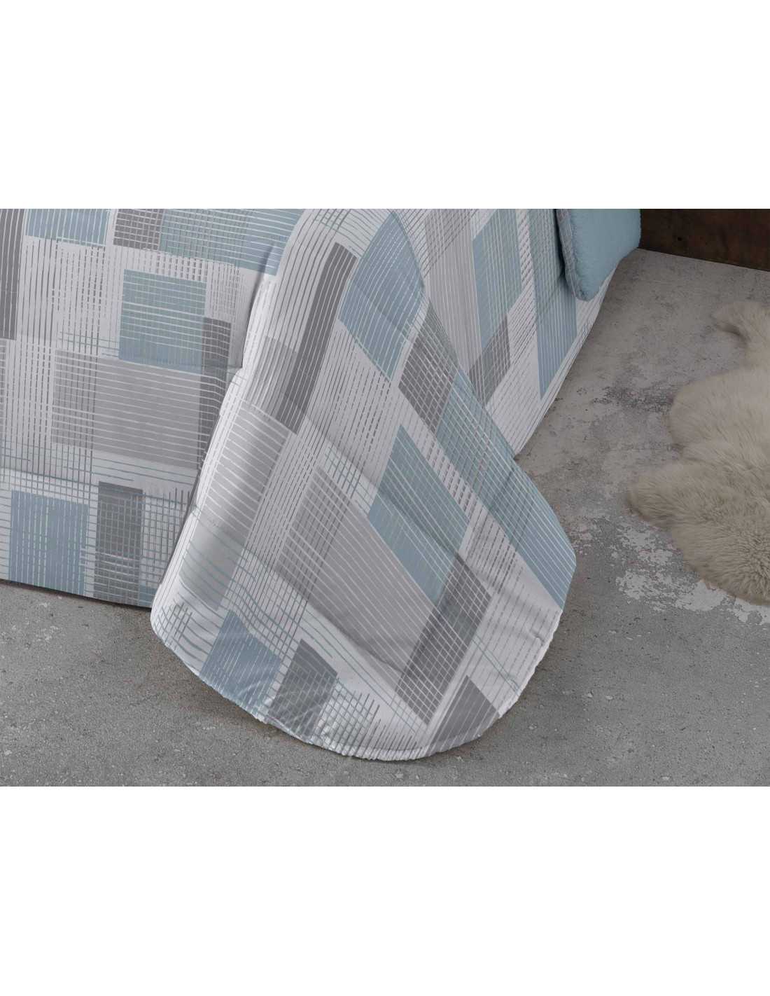 Orosei é um edredão perfeito para se proteger do frio do inverno. Um edredão cinza e azul com exterior em cetim de seda e muito quentinho graças ao seu forro em pele de carneiro.