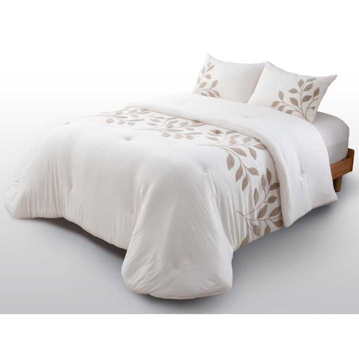 Conjunto de edredão para outono e inverno com ramos bordados em relevo e capas de almofada a condizer 50x70. Um edredão elegante e altamente decorativo, perfeito para esta estação.
