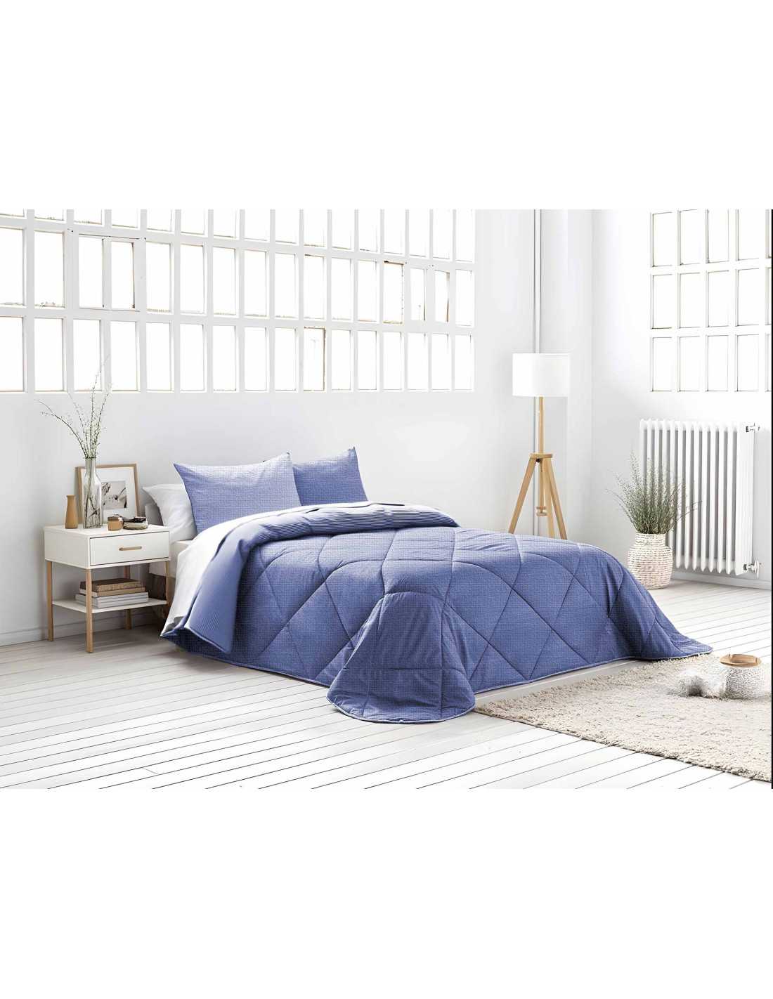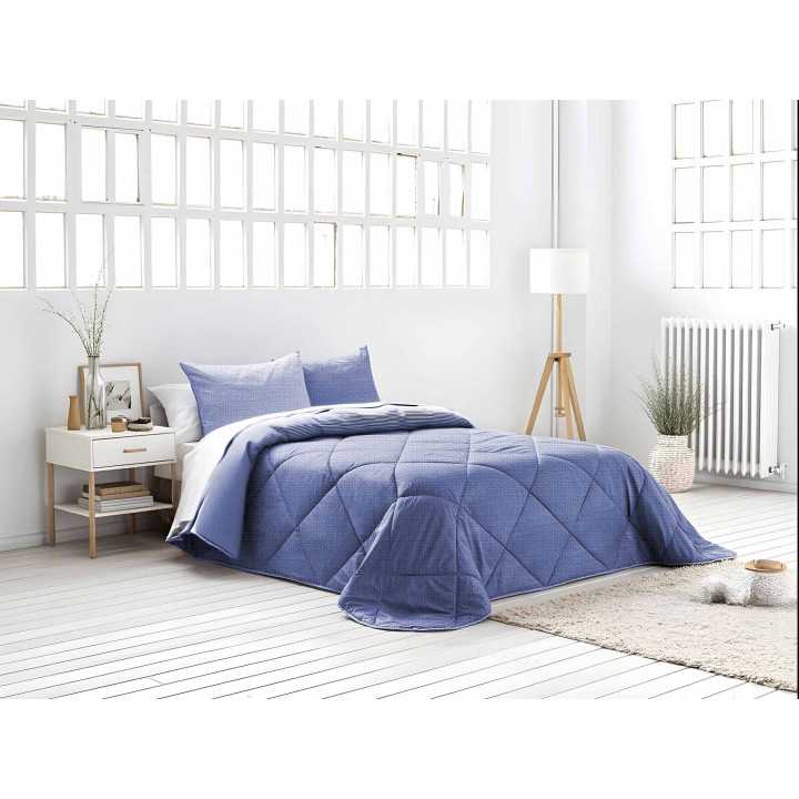 Edredão nórdico reversível com 350 gramas de enchimento na cor azul. Decore e aqueça a sua cama com esta capa.