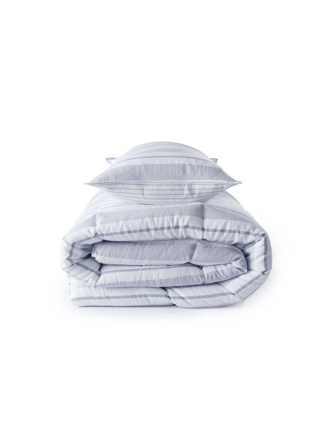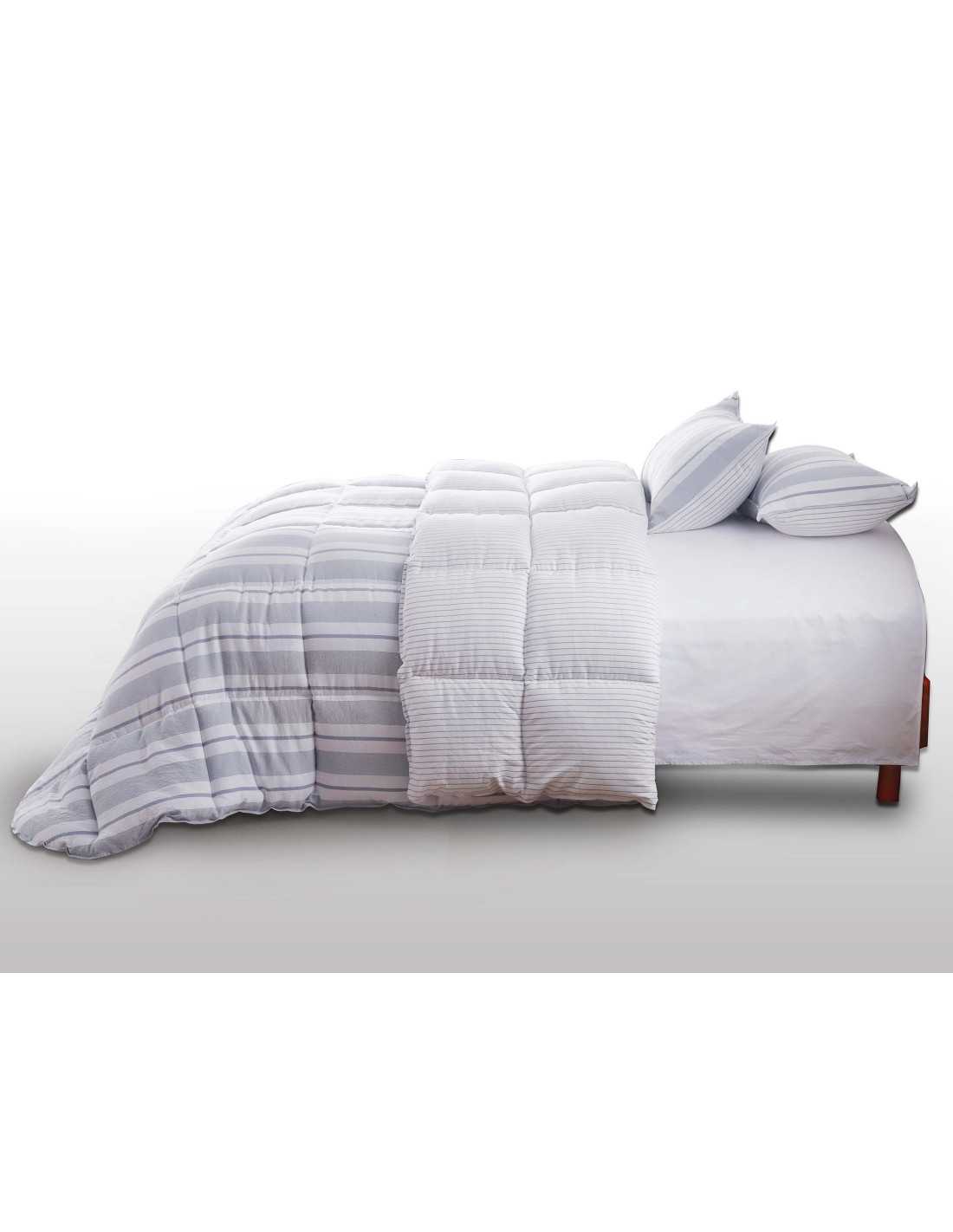 O edredão Samara é um edredão fresco e moderno com um design listrado em tons de cinza. Com um enchimento de 300 gramas, é recomendado para os meses mais frios do ano.