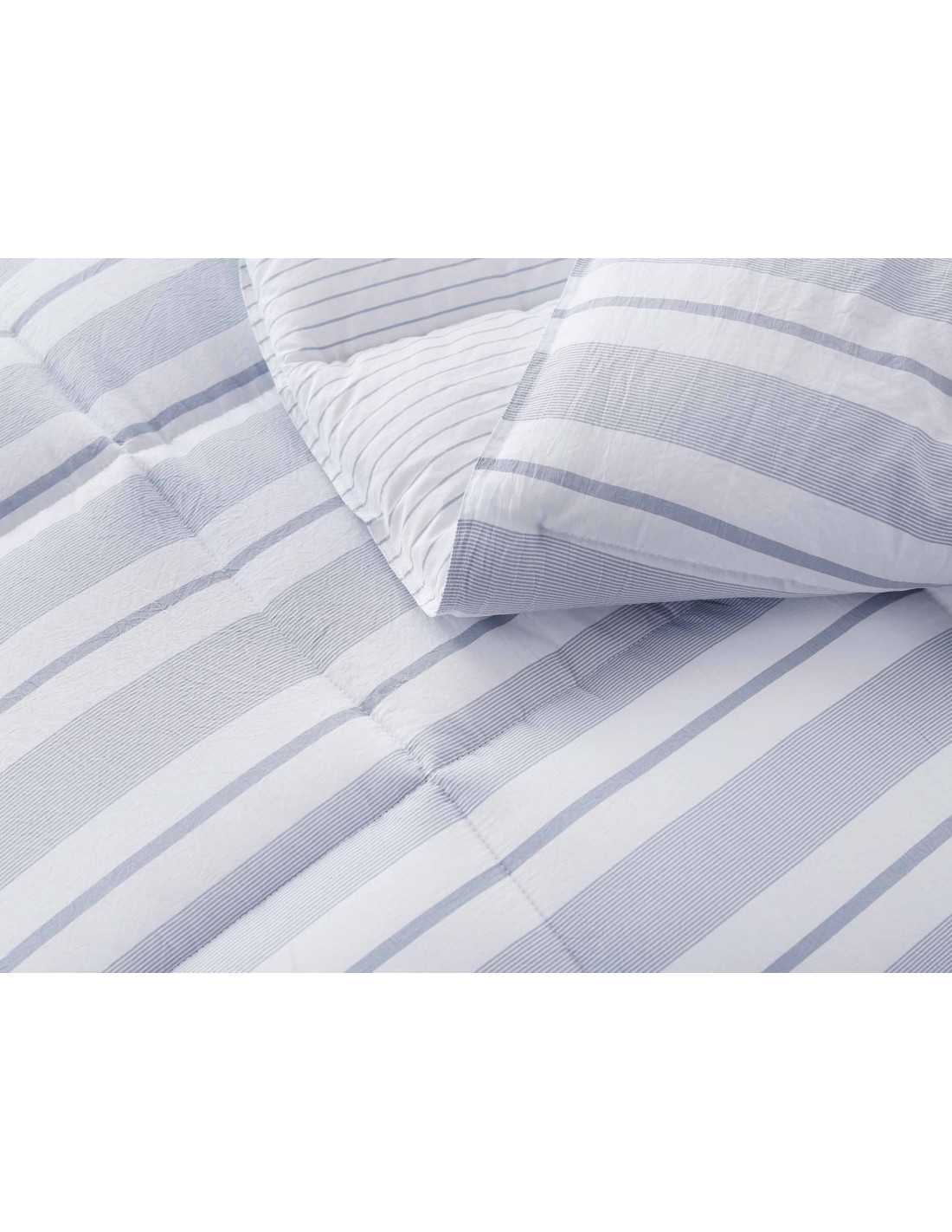 Uma colcha às riscas feita de fios tingidos, acolchoada num padrão xadrez com um enchimento leve que acrescenta relevo, e o seu tecido stonewashed dá-lhe um toque muito suave e agradável. Um edredão moderno e chamativo, perfeito para esta estação.