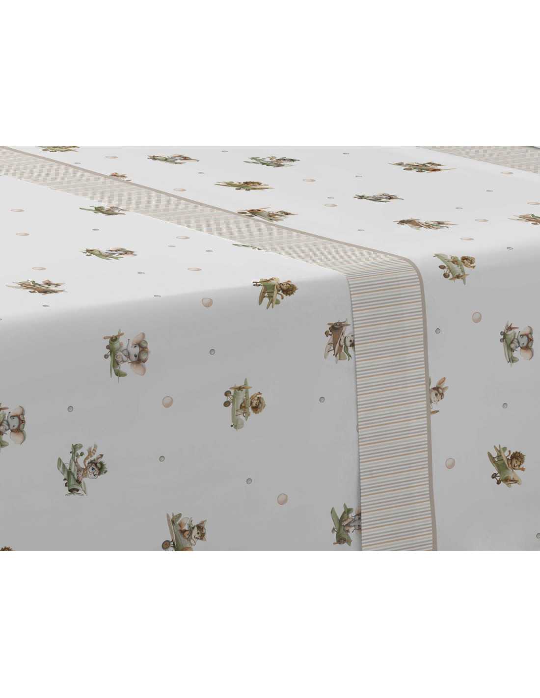Jogo de lençóis infantis Dusty na cor bege, com divertidas ilustrações de bichinhos em aeroplanos, ideal para os pequenos de casa.