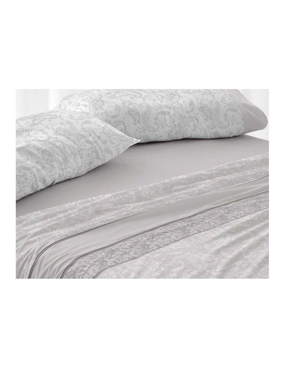 Conjunto de lençóis Burrito Branco com um desenho muito decorativo com motivos de caxemira, em 50% algodão para um engomar fácil.