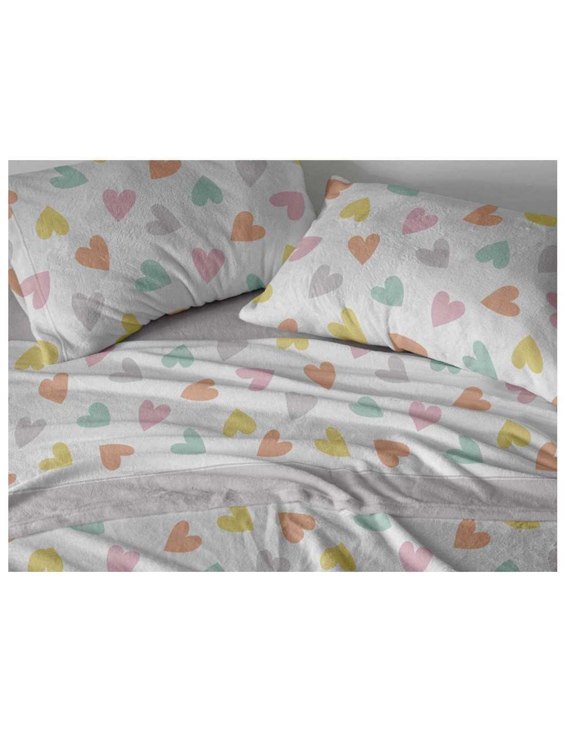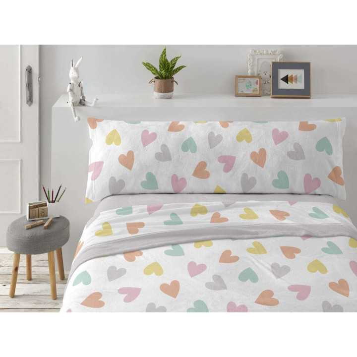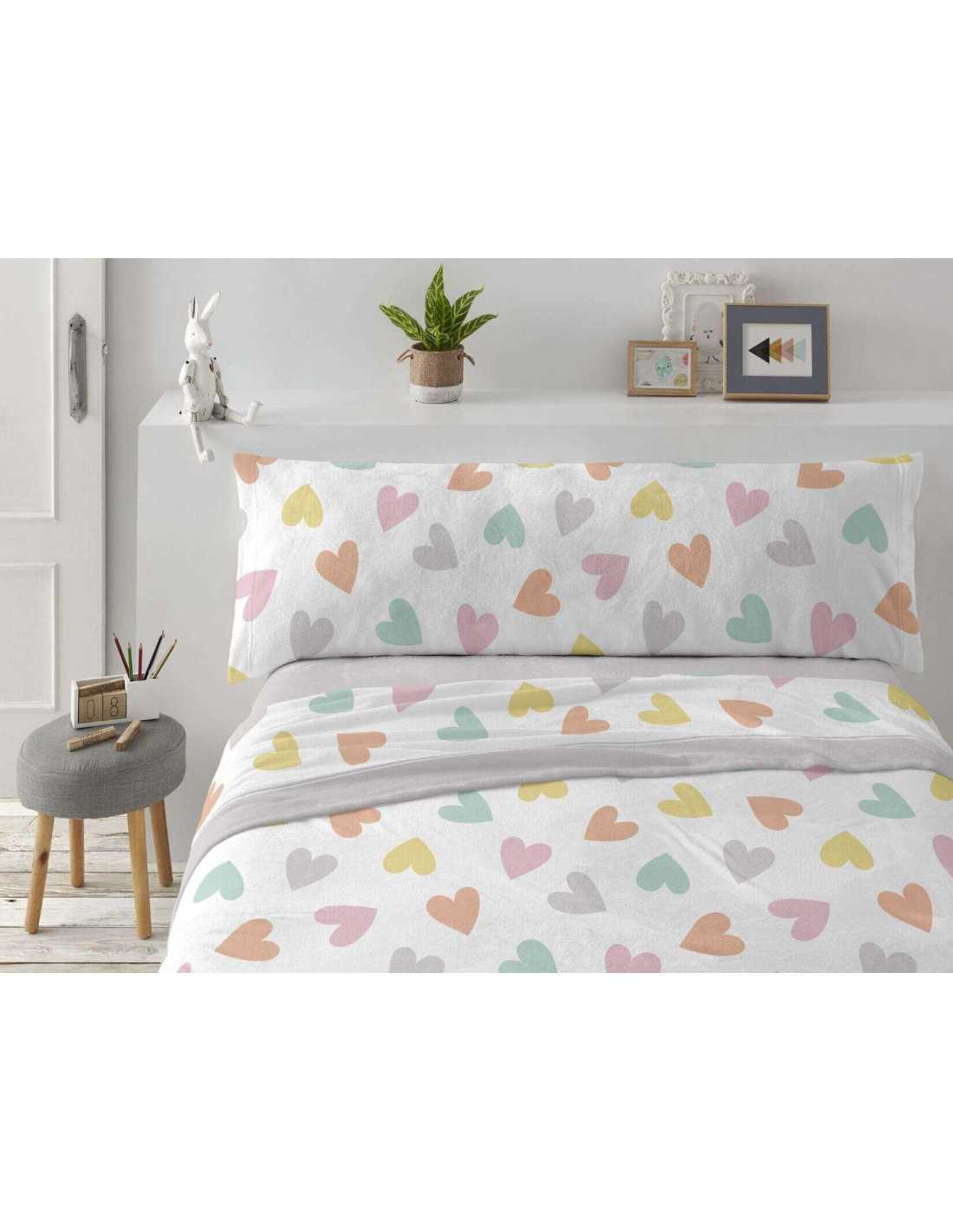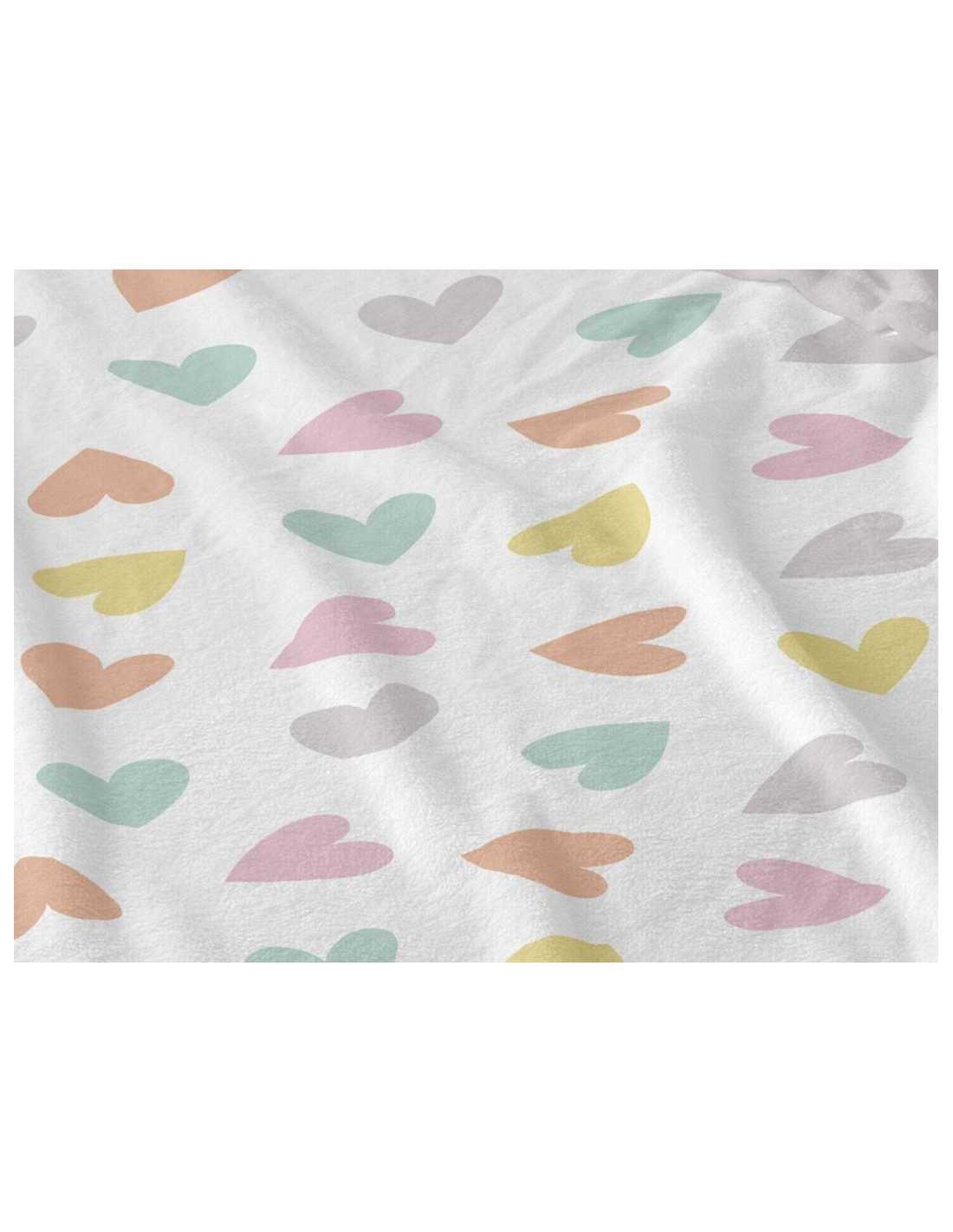Jogo de sabanas Burrito Blanco em coralina com um design fresco e divertido com corações de várias cores. Muito quentes e suaves.