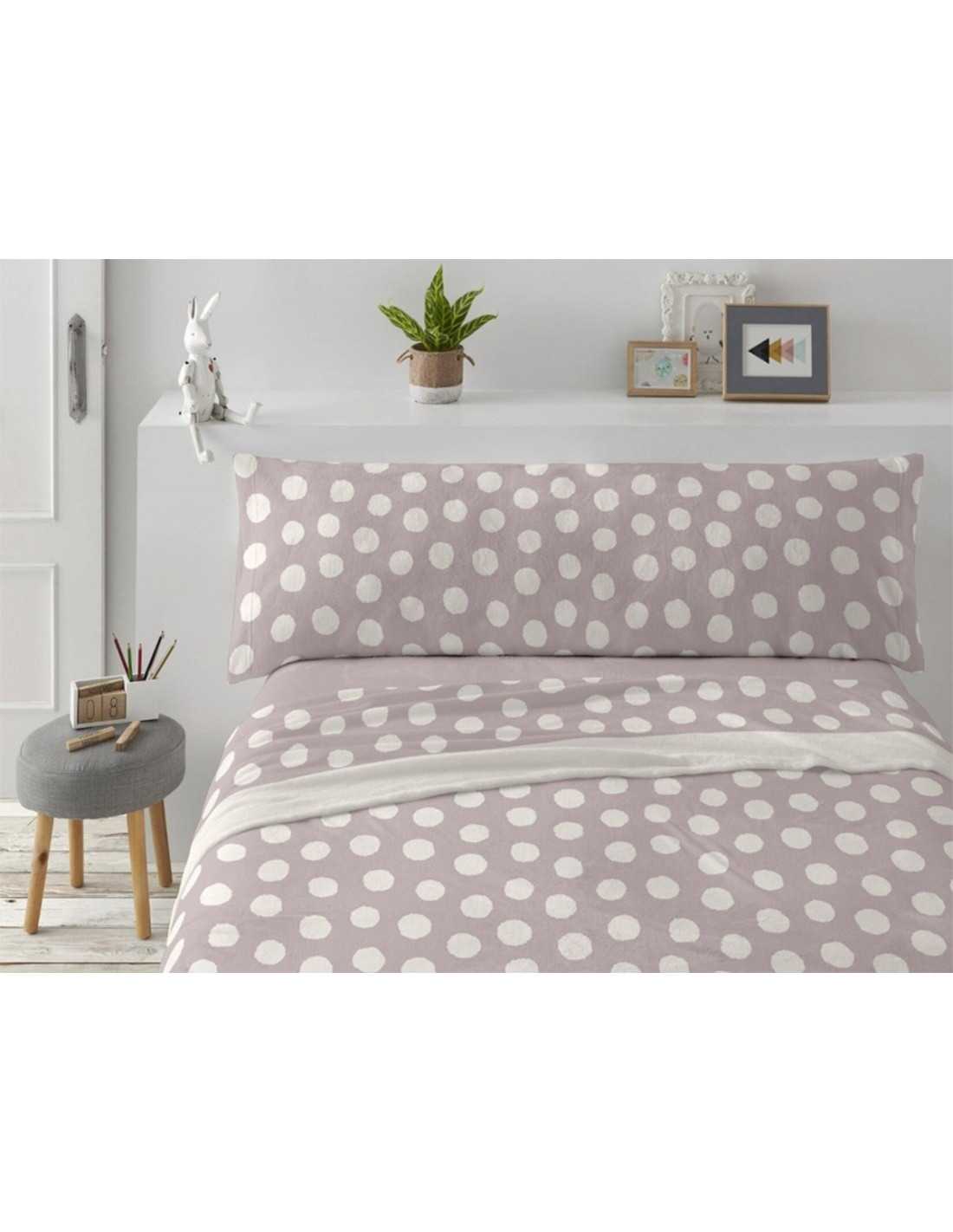 Jogo de Lençóis Burrito Blanco de Coralina, com design de poás grandes. Sabana de gran calidez e tacto extra suave ideal para os meses de inverno mais frios.
