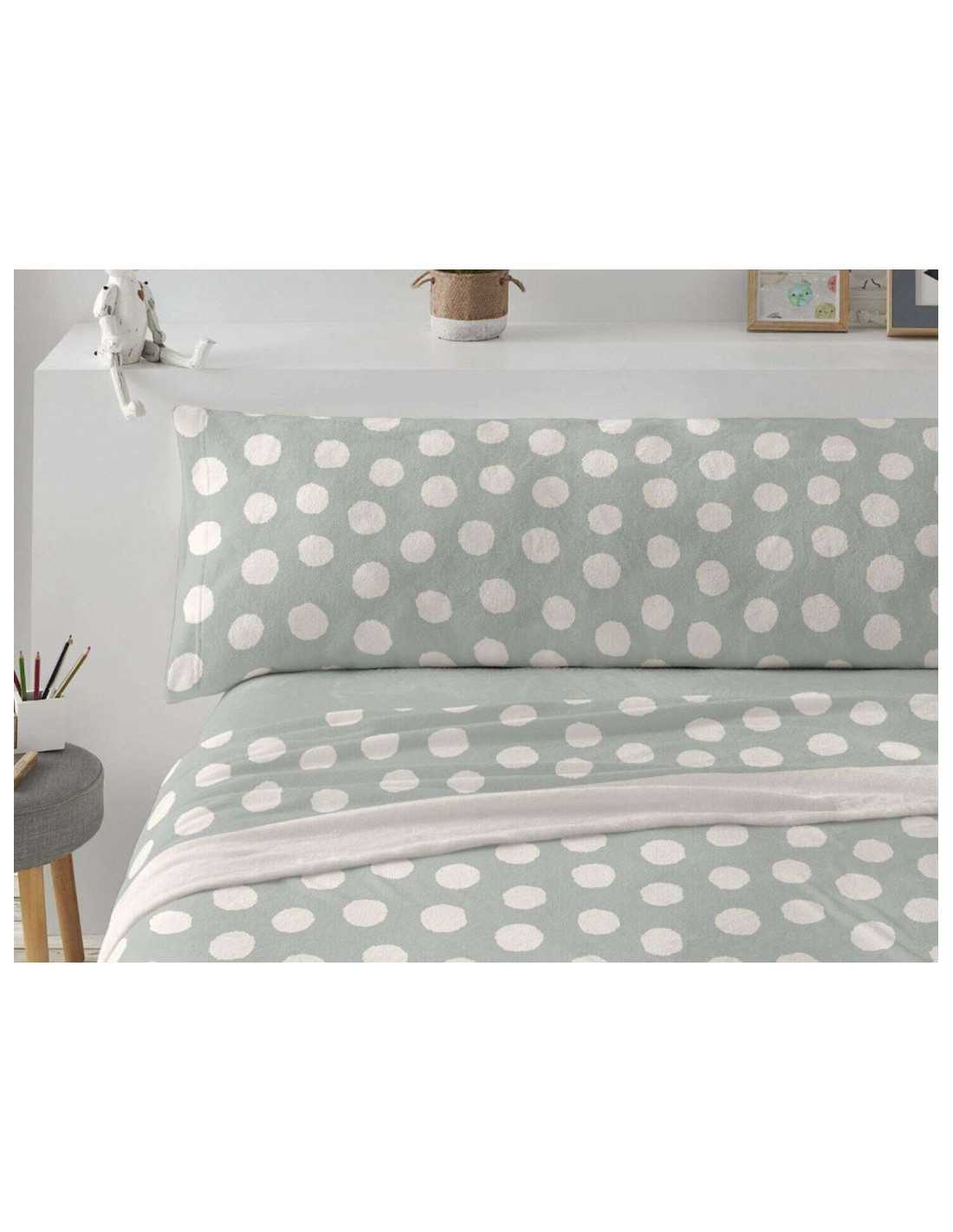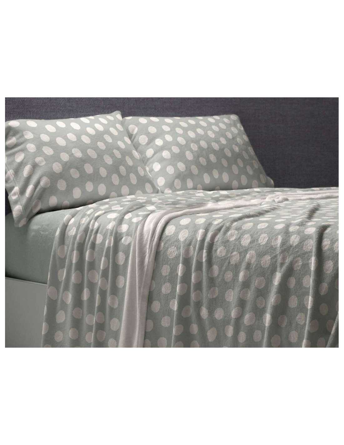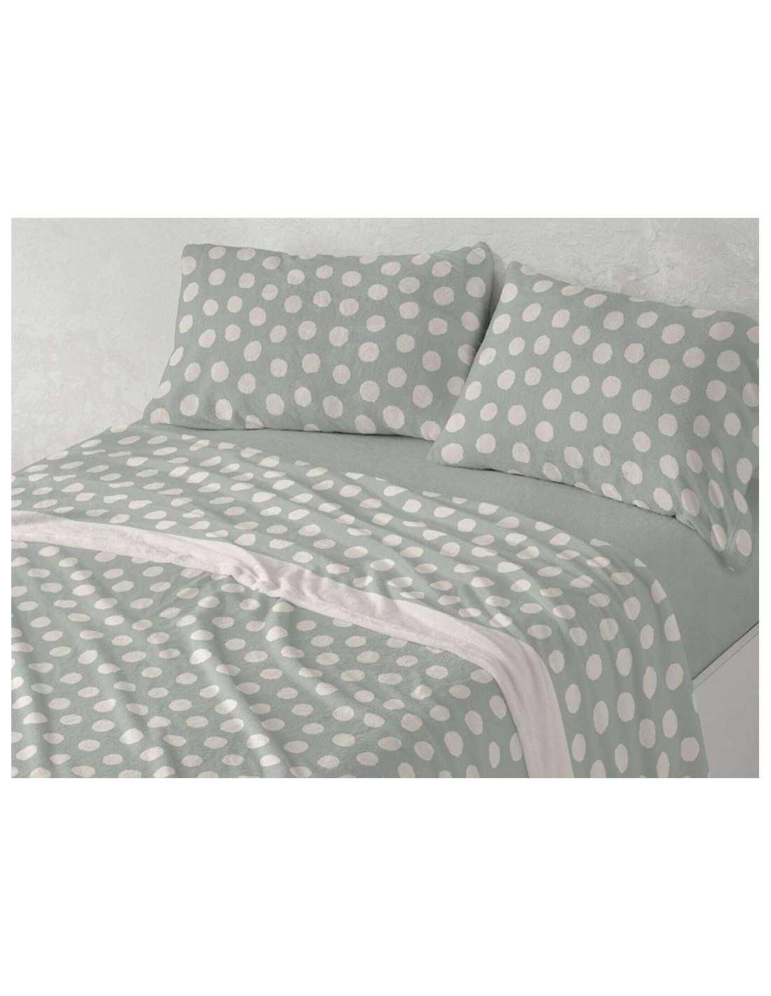 Jogo de Lençóis Burrito Blanco de Coralina, com design de poás grandes. Sabana de gran calidez e tacto extra suave ideal para os meses de inverno mais frios.