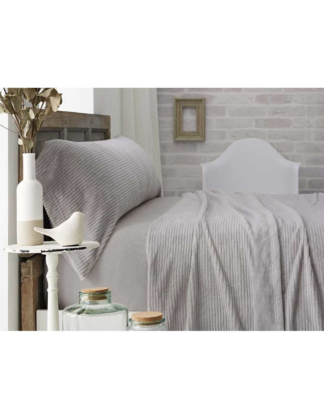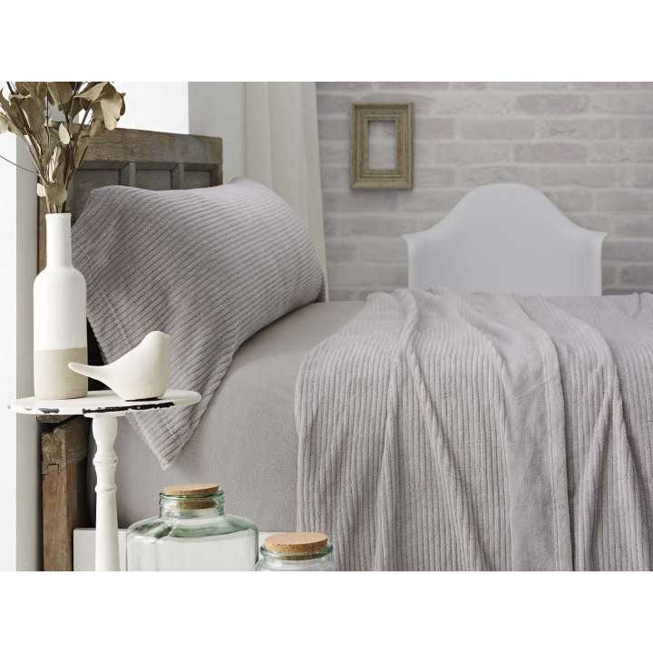 Veriana é um conjunto de lençóis Coralina, muito quente e macio, com um design simples com nervuras en cor cinza.