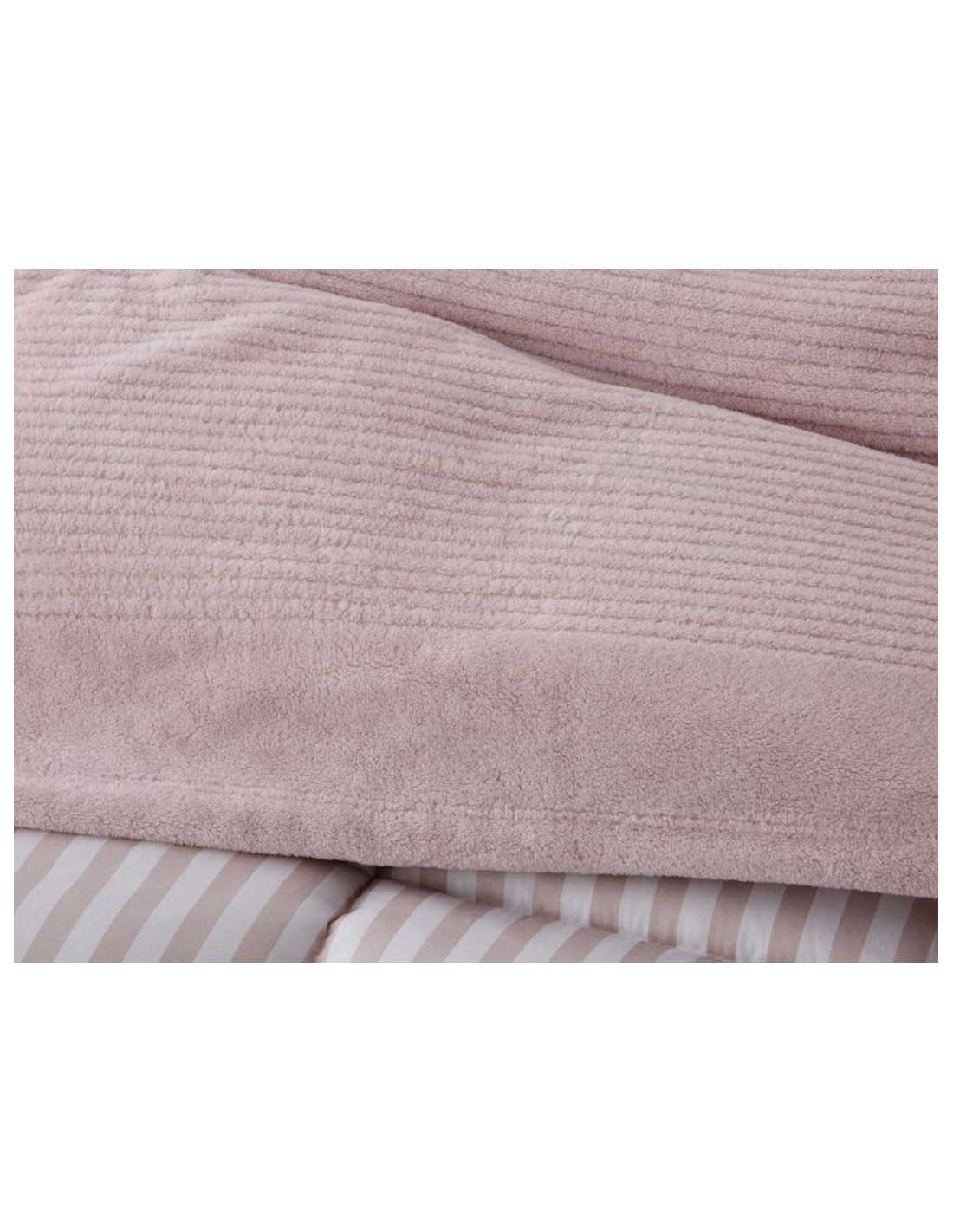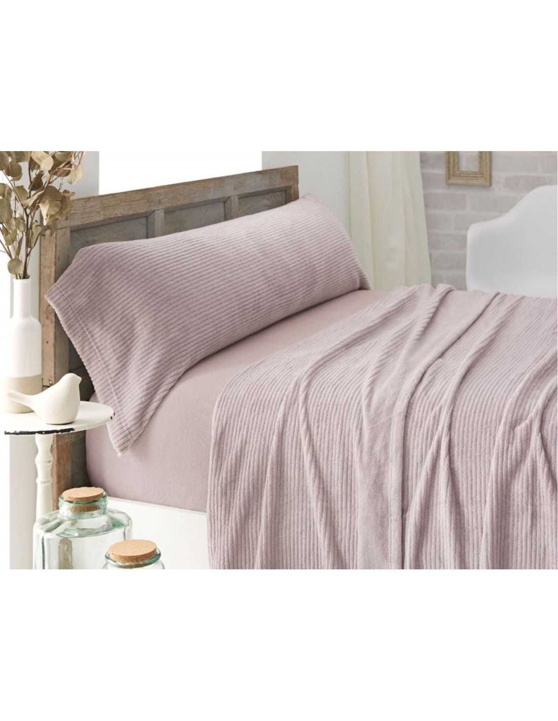 Veriana é um conjunto de lençóis Coralina, muito quente e macio, com um design simples com nervuras en cor nude.