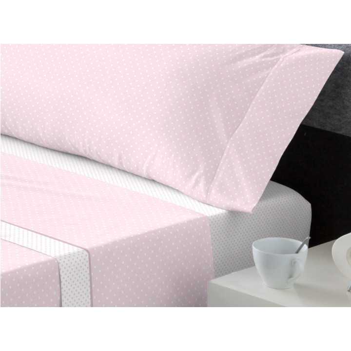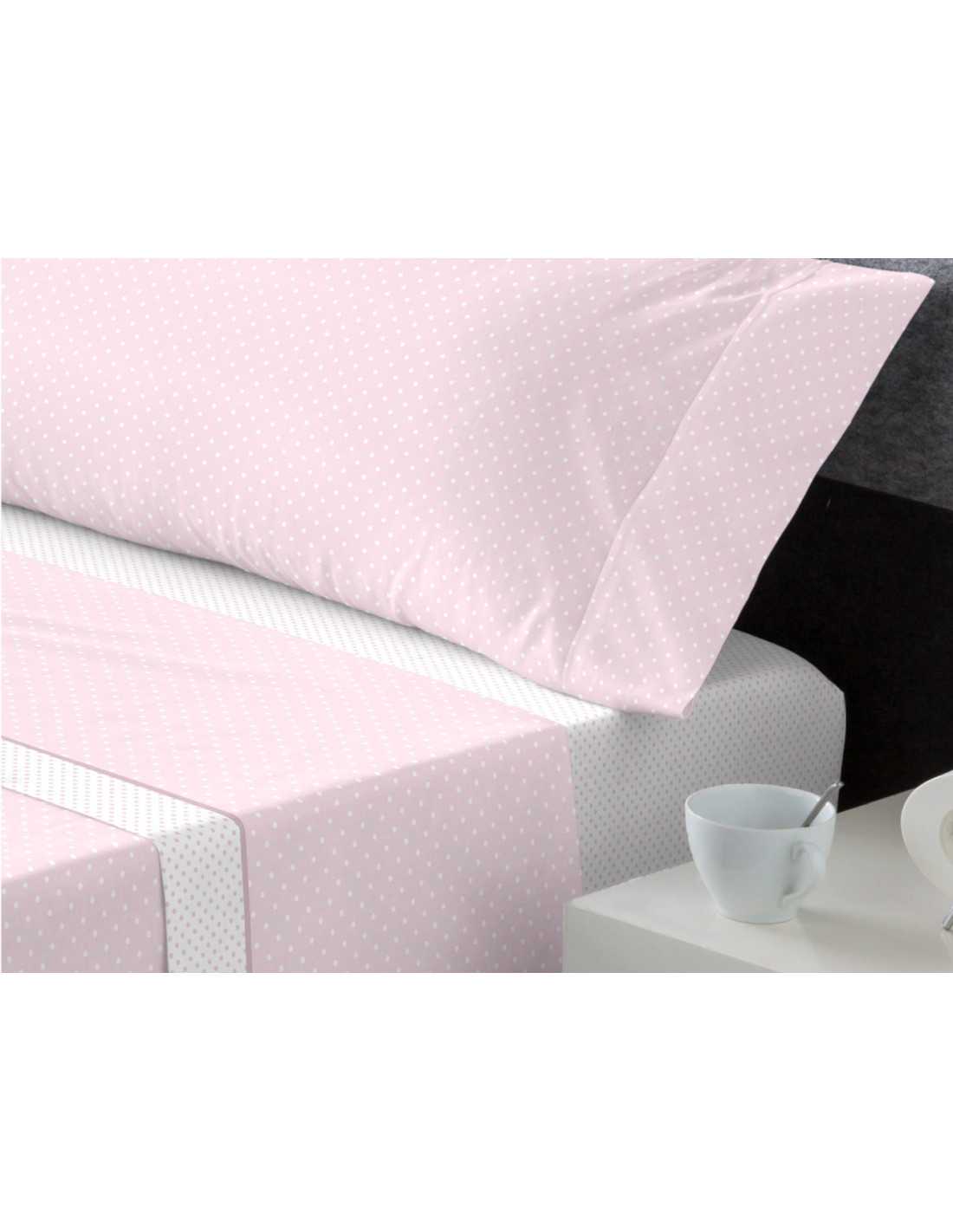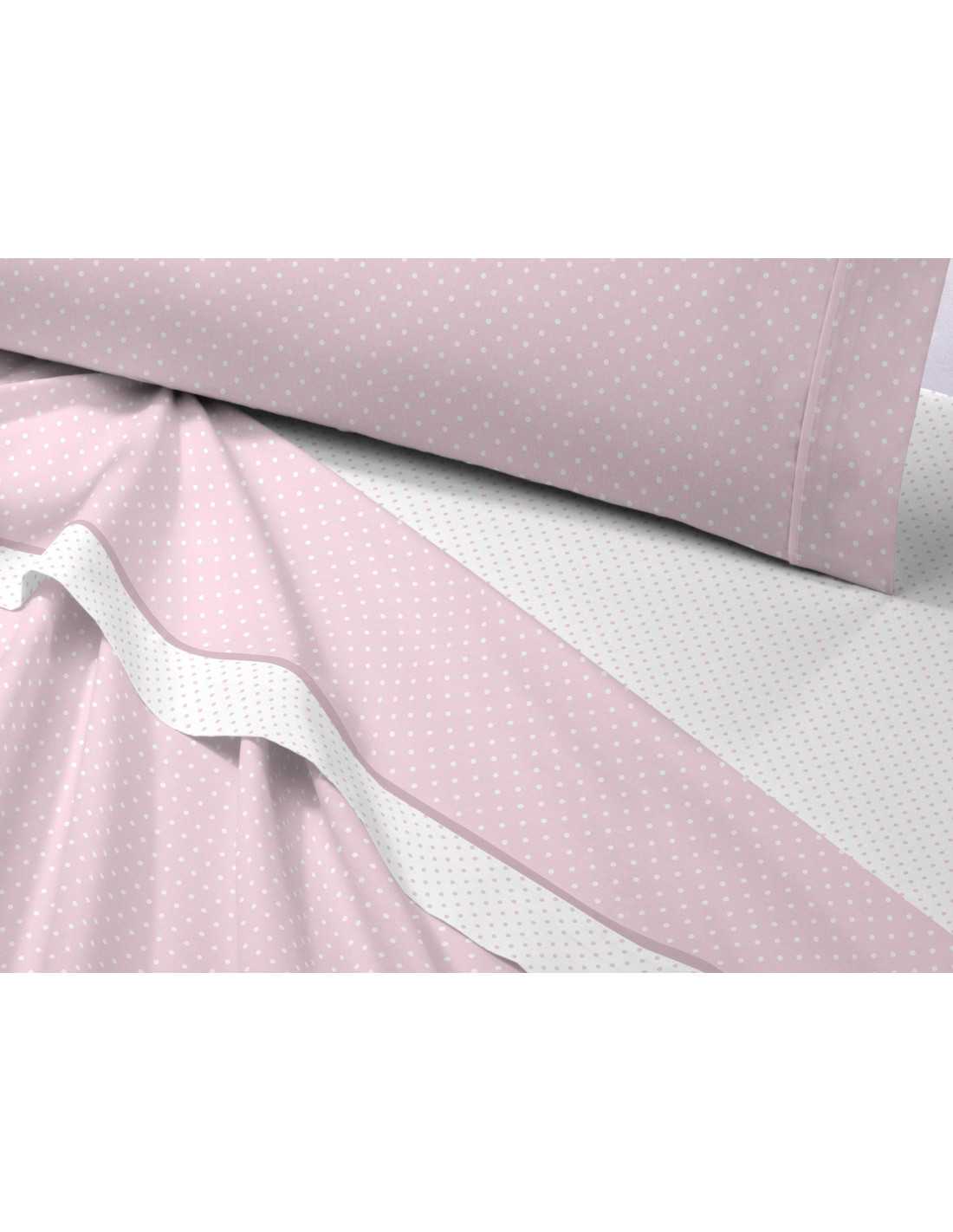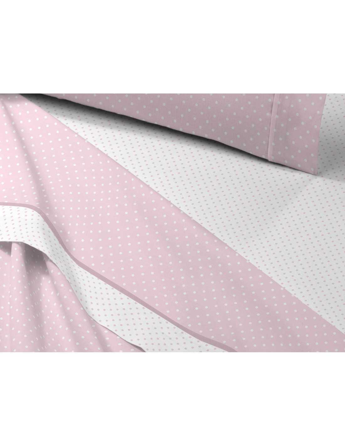 Osman é um conjunto de lençóis coralina com desenho de bolinhas brancas sobre fundo rosa e toque ultramacio para um descanso agradável.