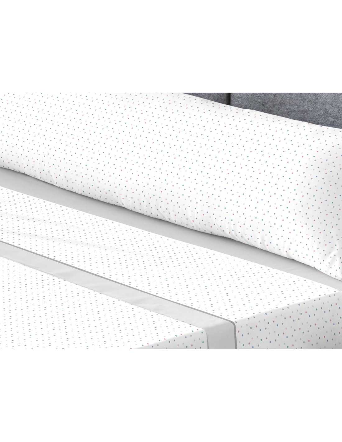 O conjunto de lençóis Reidar, em tecido polar coral, apresenta um design simples de bolinhas em diversas cores, composto por um lençol de baixo cinzento e um lençol de cima com rebordo cinzento. Possui um toque ultramacio para uma noite de sono tranquila.