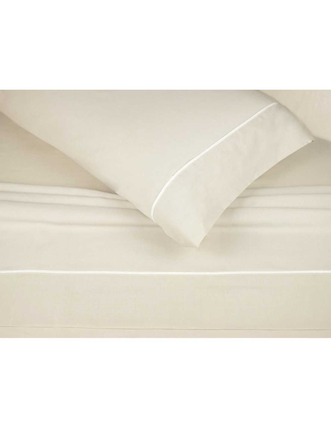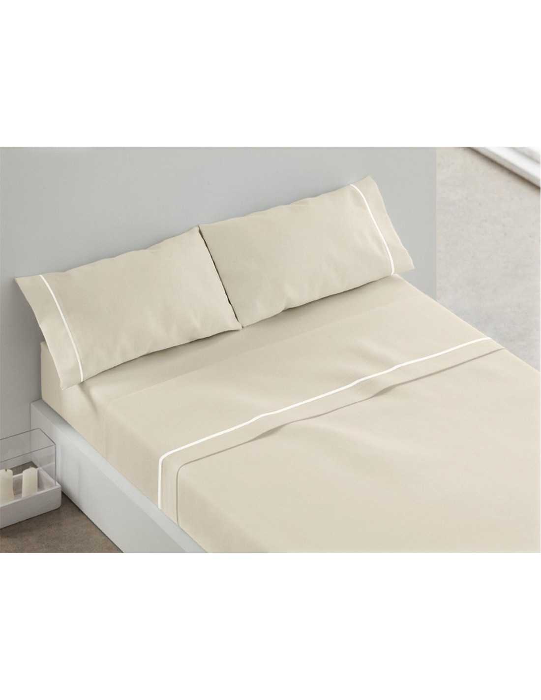Jogo de lençóis 100% algodão da marca Burrito Blanco, em bege liso com detalhes em branco. Um conjunto de lençóis de alta qualidade.