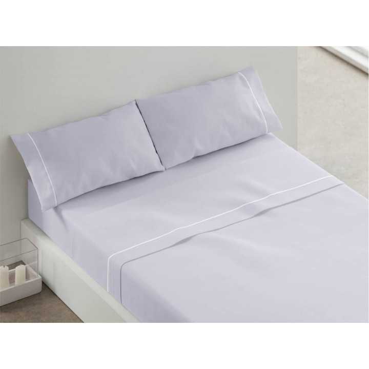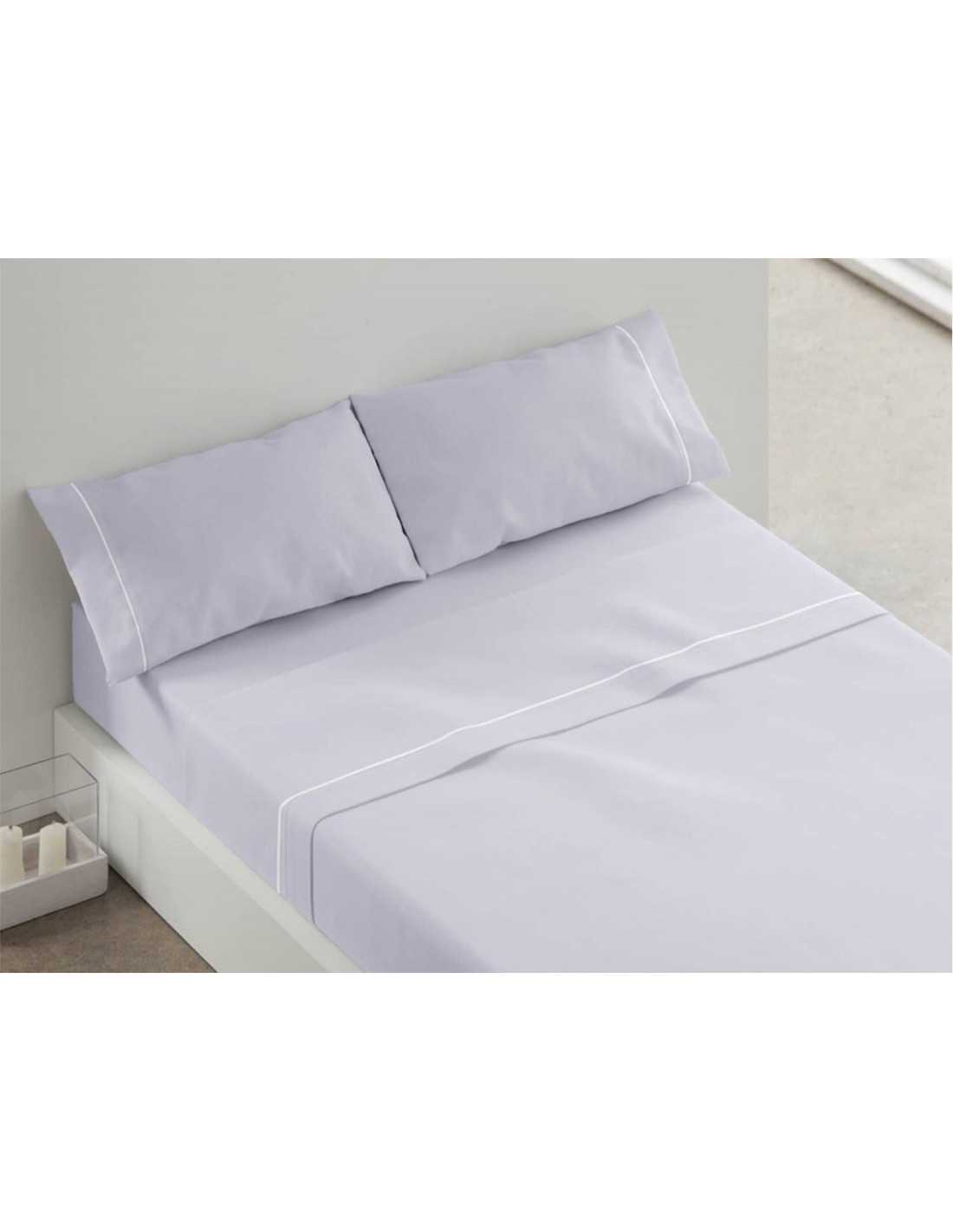 Jogo de lençóis 100% algodão da marca Burrito Blanco, em cinza liso com detalhes em branco. Um conjunto de lençóis de alta qualidade.