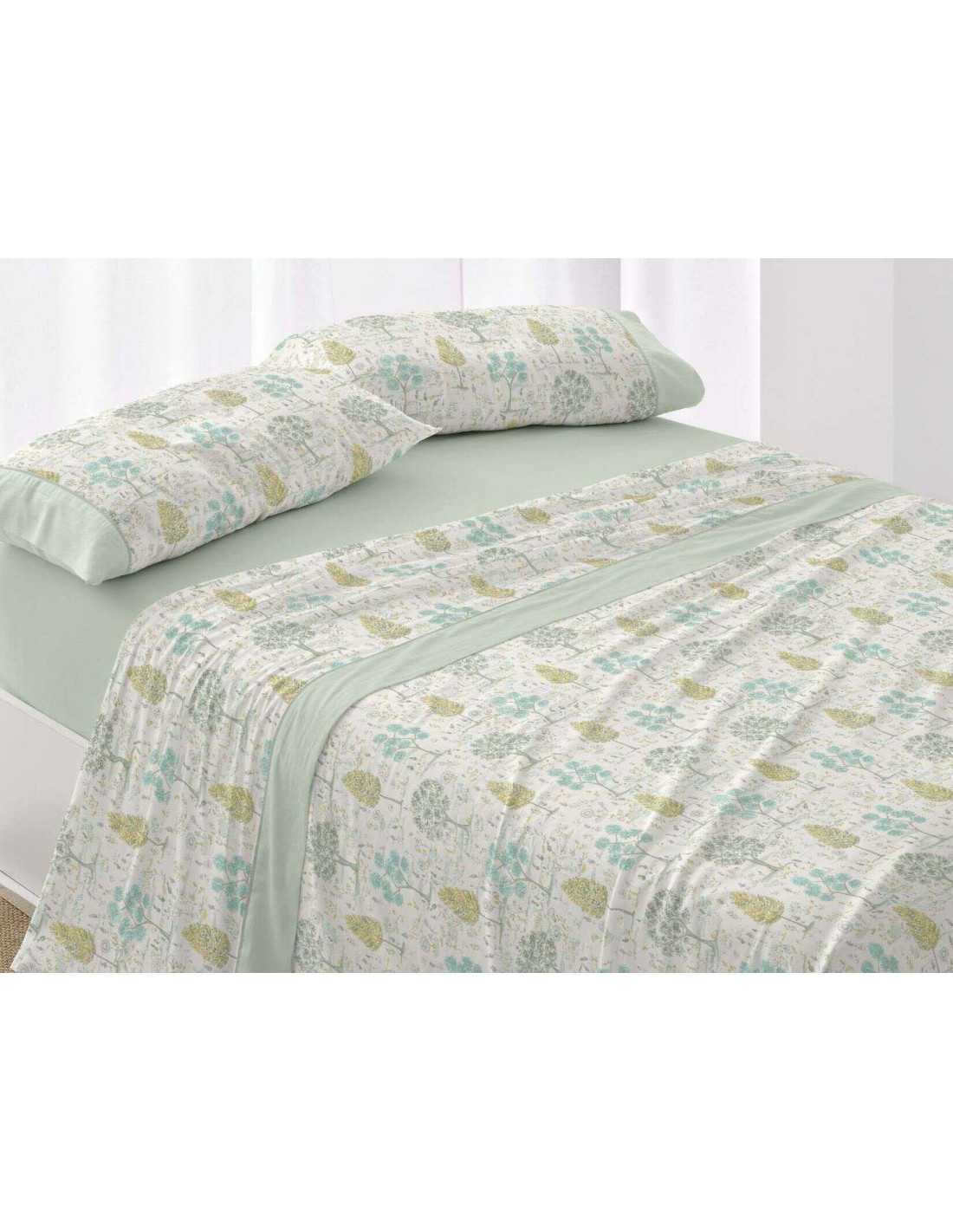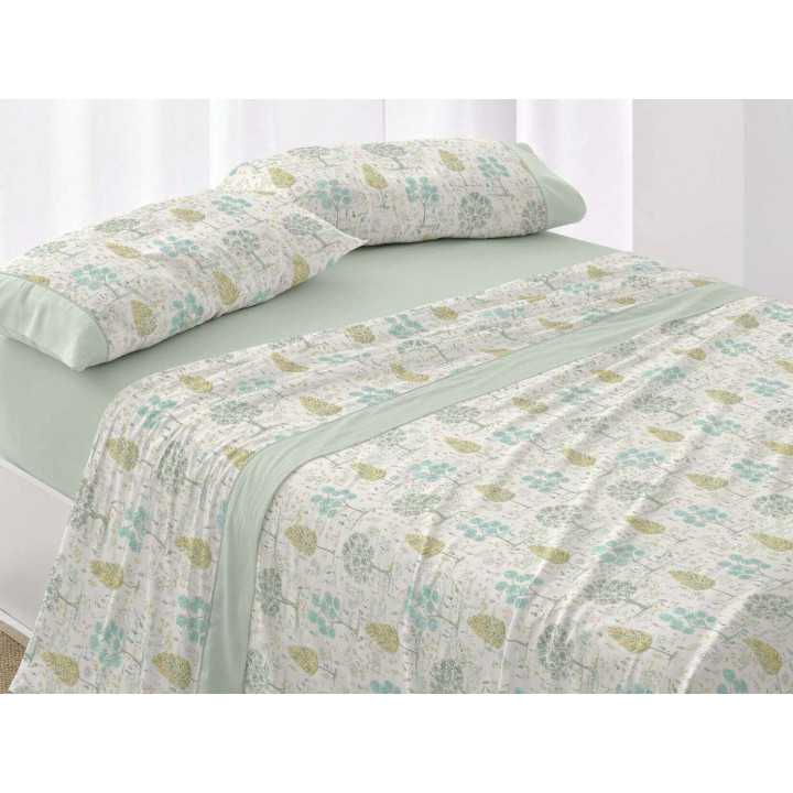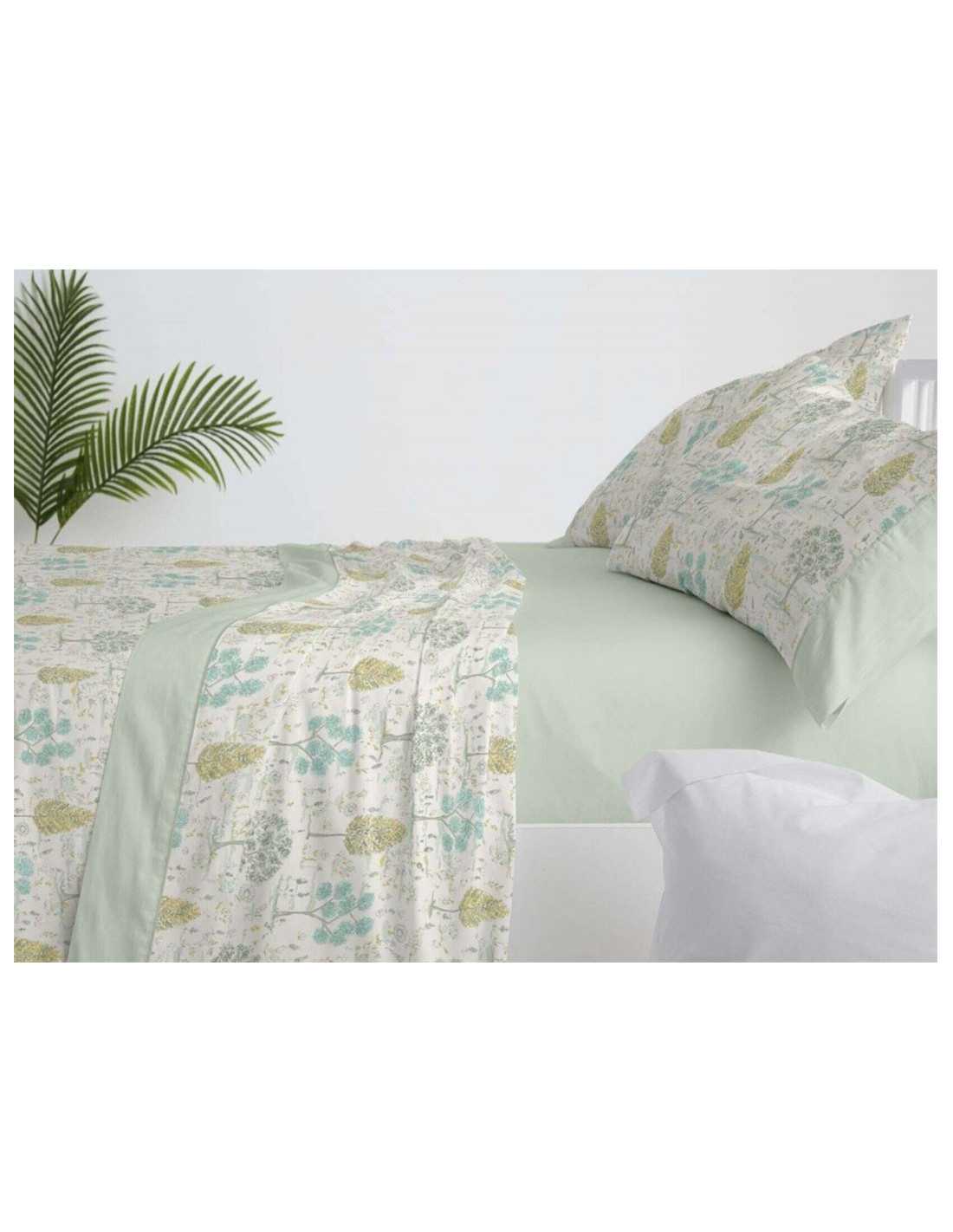 Jogo de lençóis da marca Burrito Blanco em tons de verde com estampado botânico, para decorar o seu quarto com charme e frescura.