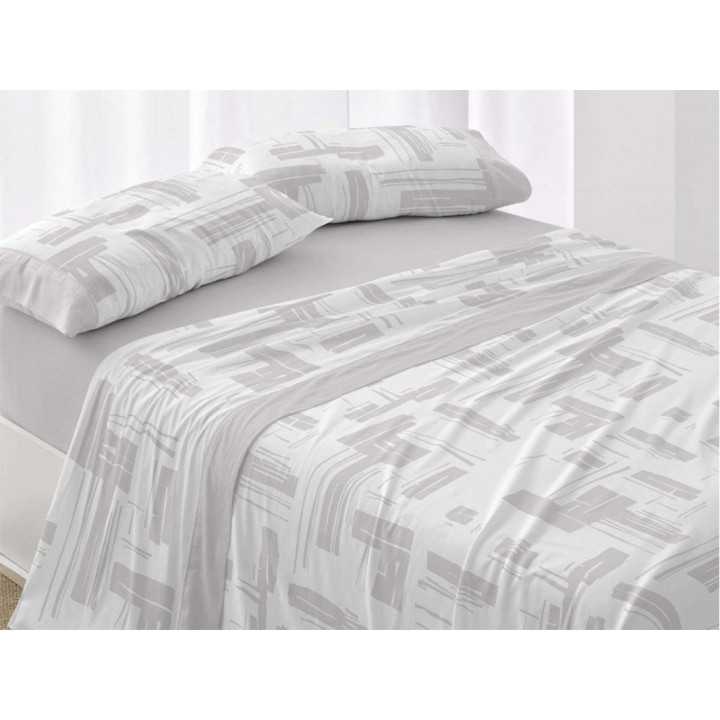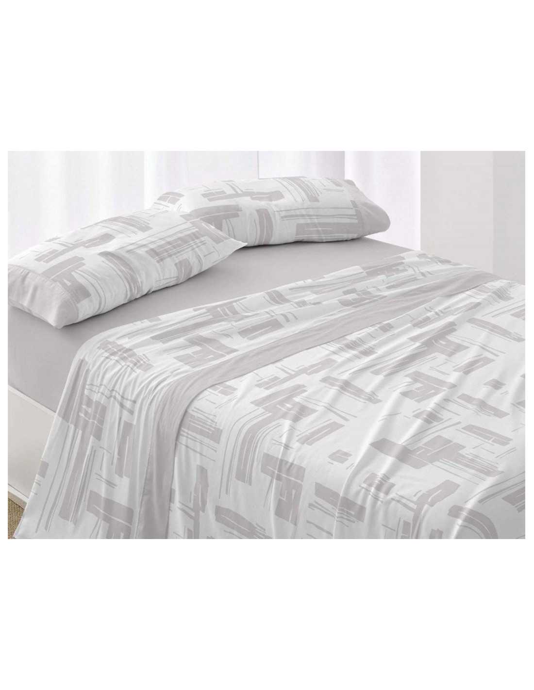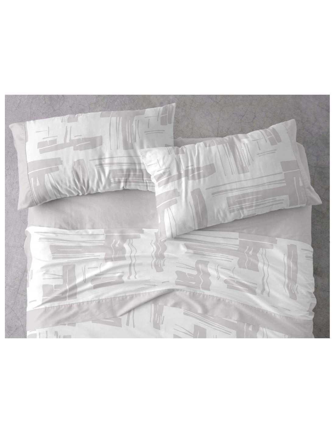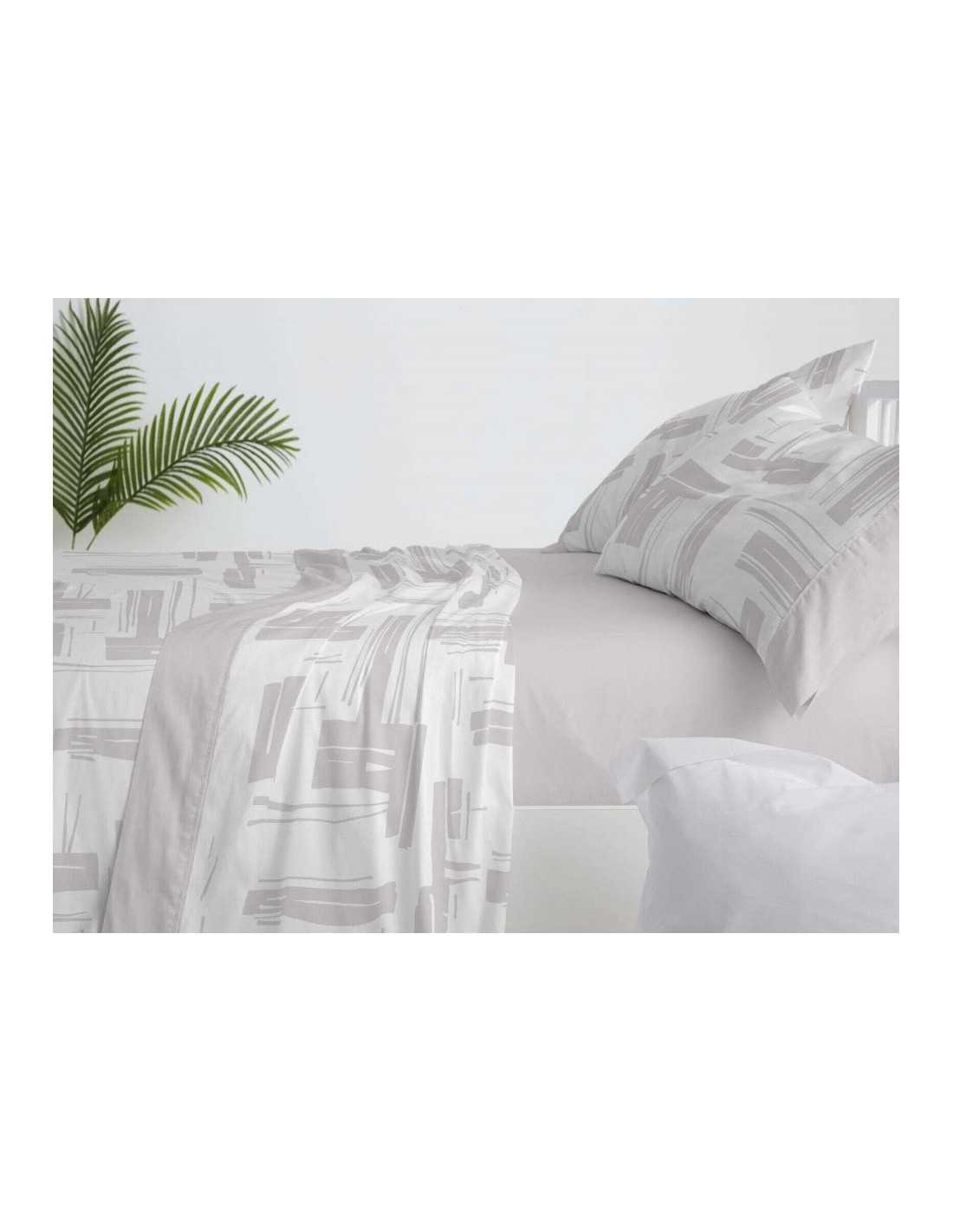 Jogo de lençóis da marca Burrito Blanco em cinzento com um design geométrico com linhas abstratas, ideal para dar um ar moderno ao seu quarto.