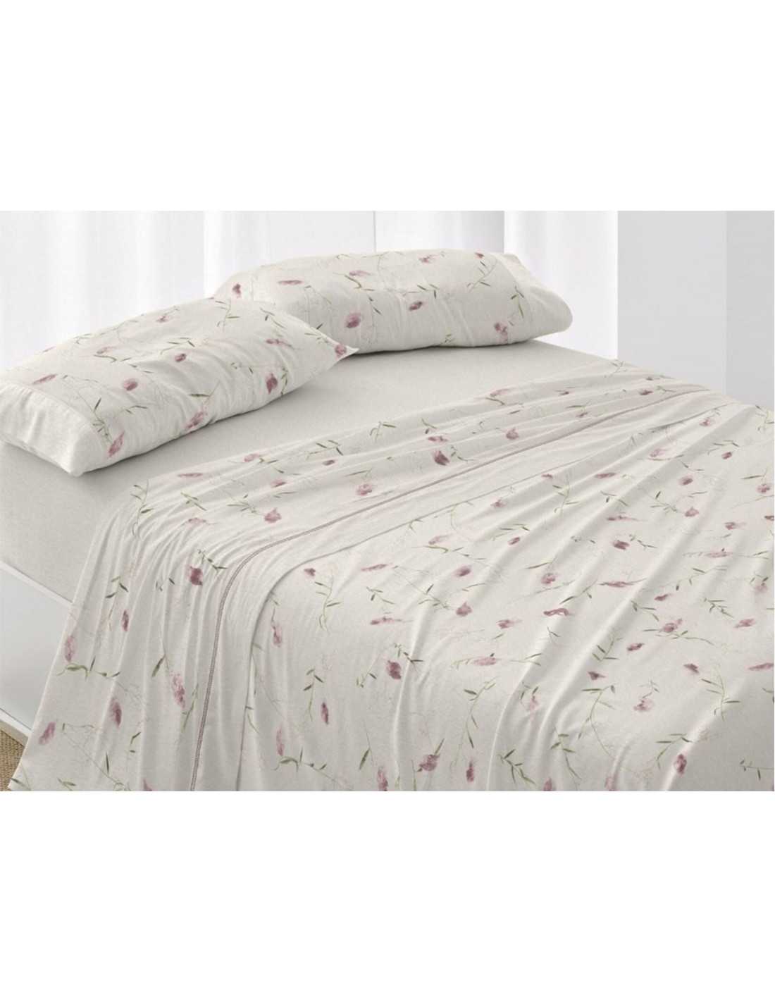 Jogo de lençóis da Burrito Blanco modelo Linfa na cor rosa com um bonito design botânico. Um jogo de lençóis com lençol de cima, lençol de baixo e fronha.