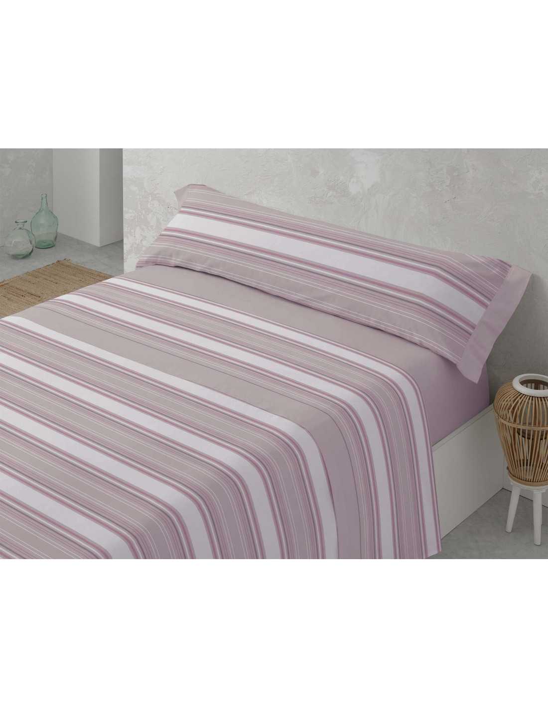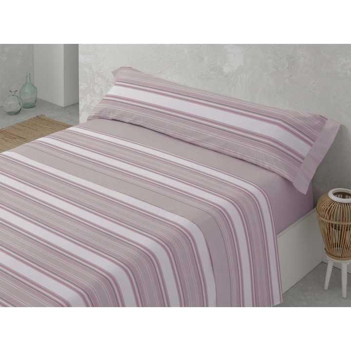 Zari é um conjunto de lençóis com um design simples às riscas em begecom detalhes coloridos, com um lençol de baixo liso e pontas de lençol de cima a condizer. Um conjunto de lençóis cheio de estilo para decorar a sua cama a um preço fantástico.