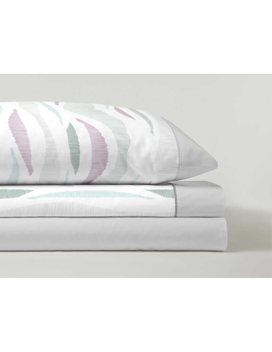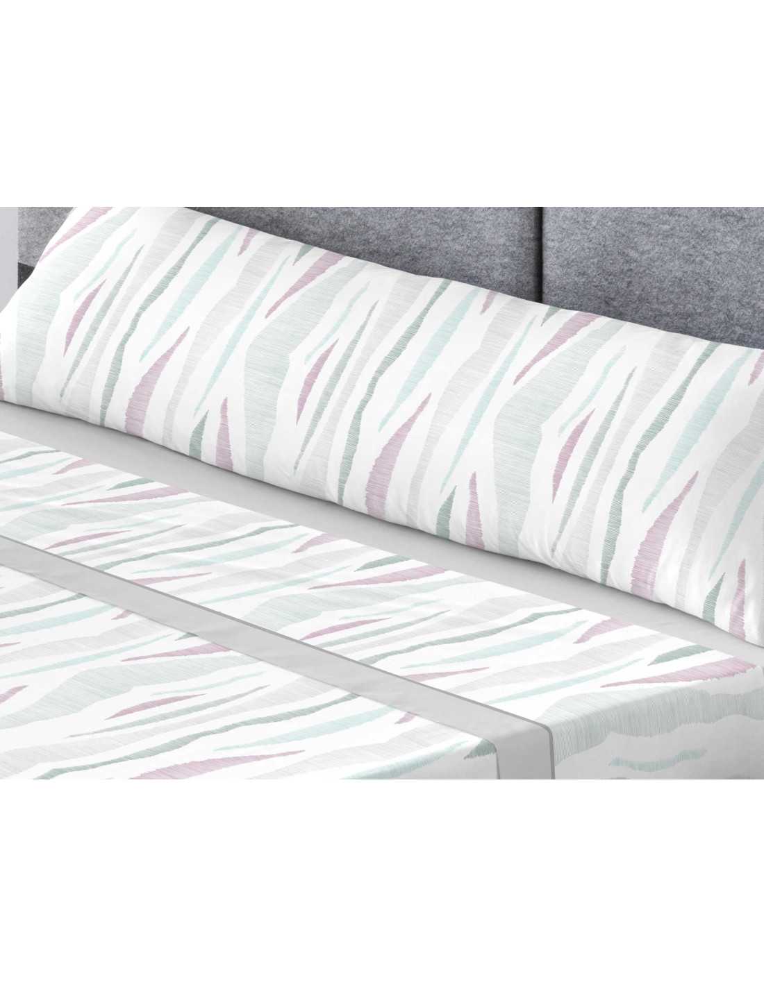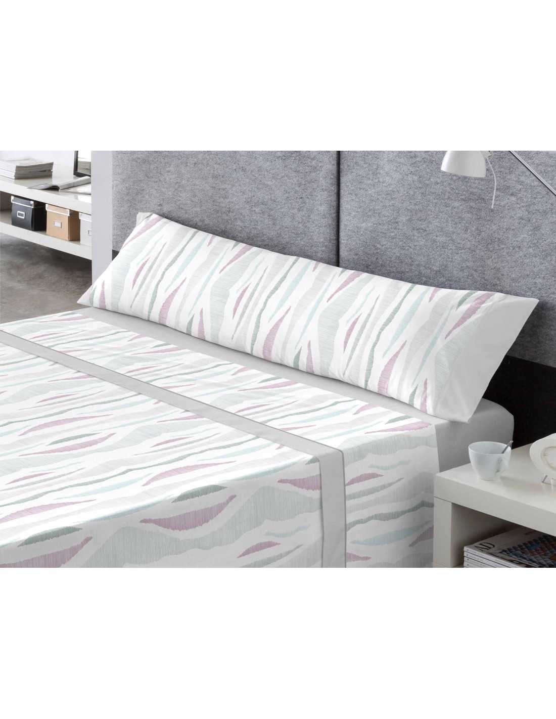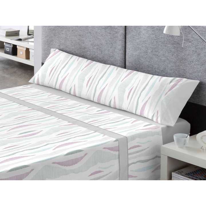 Jogo de lençóis 50% algodão - 50% poliéster com um design abstrato muito decorativo em tons predominantemente cinzentos. Composto por 3 peças. Ideal para a meia estação e verão.