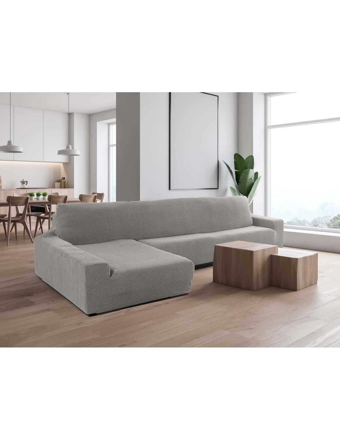 Capa de sofá para chaise longue na cor cinza claro com adaptabilidade total em todas as direções. Grande poder de elasticidade.