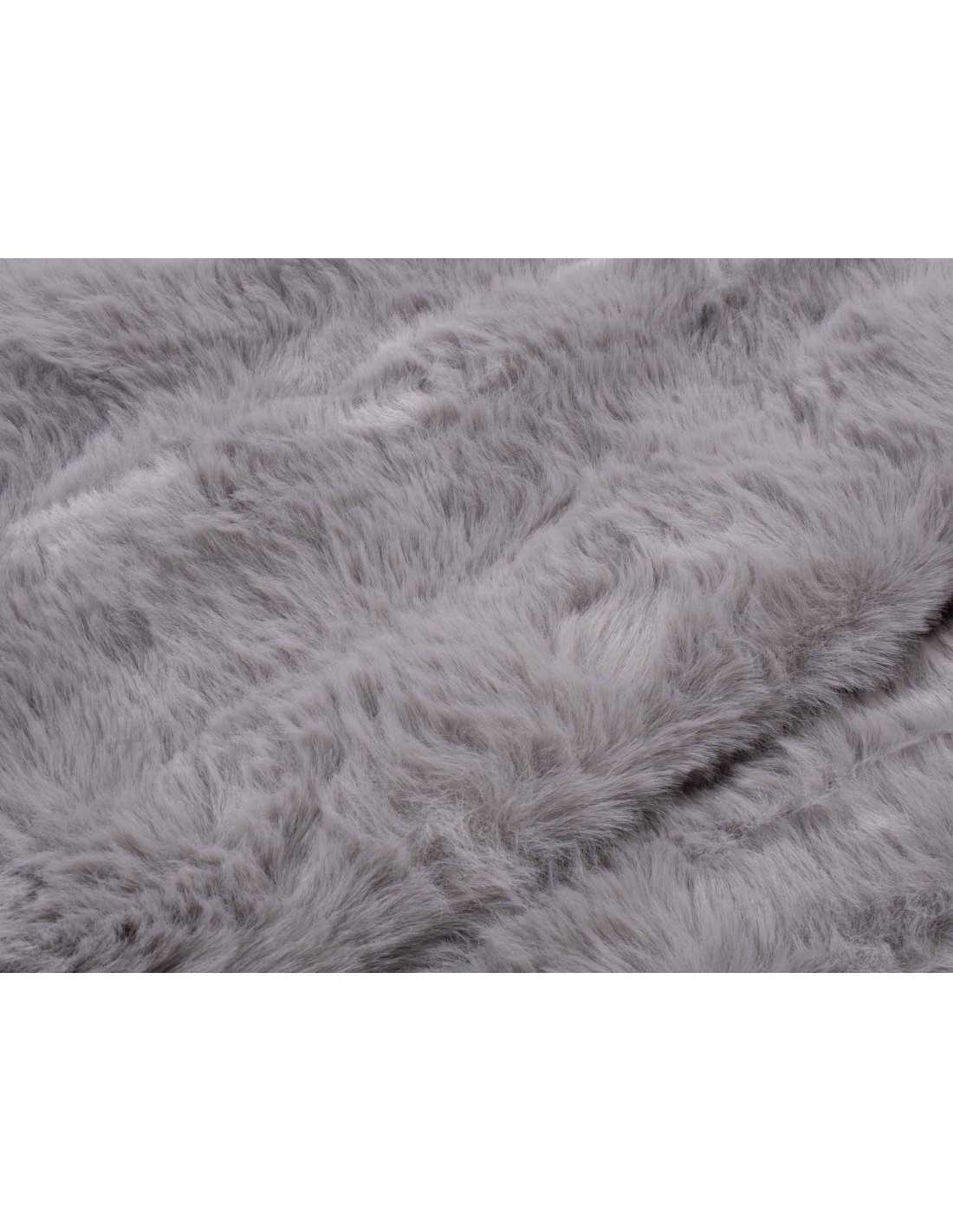Manta tipo plaid em imitação de pele na cor cinzenta. De toque muito suave e muito prática para a sala e o quarto.