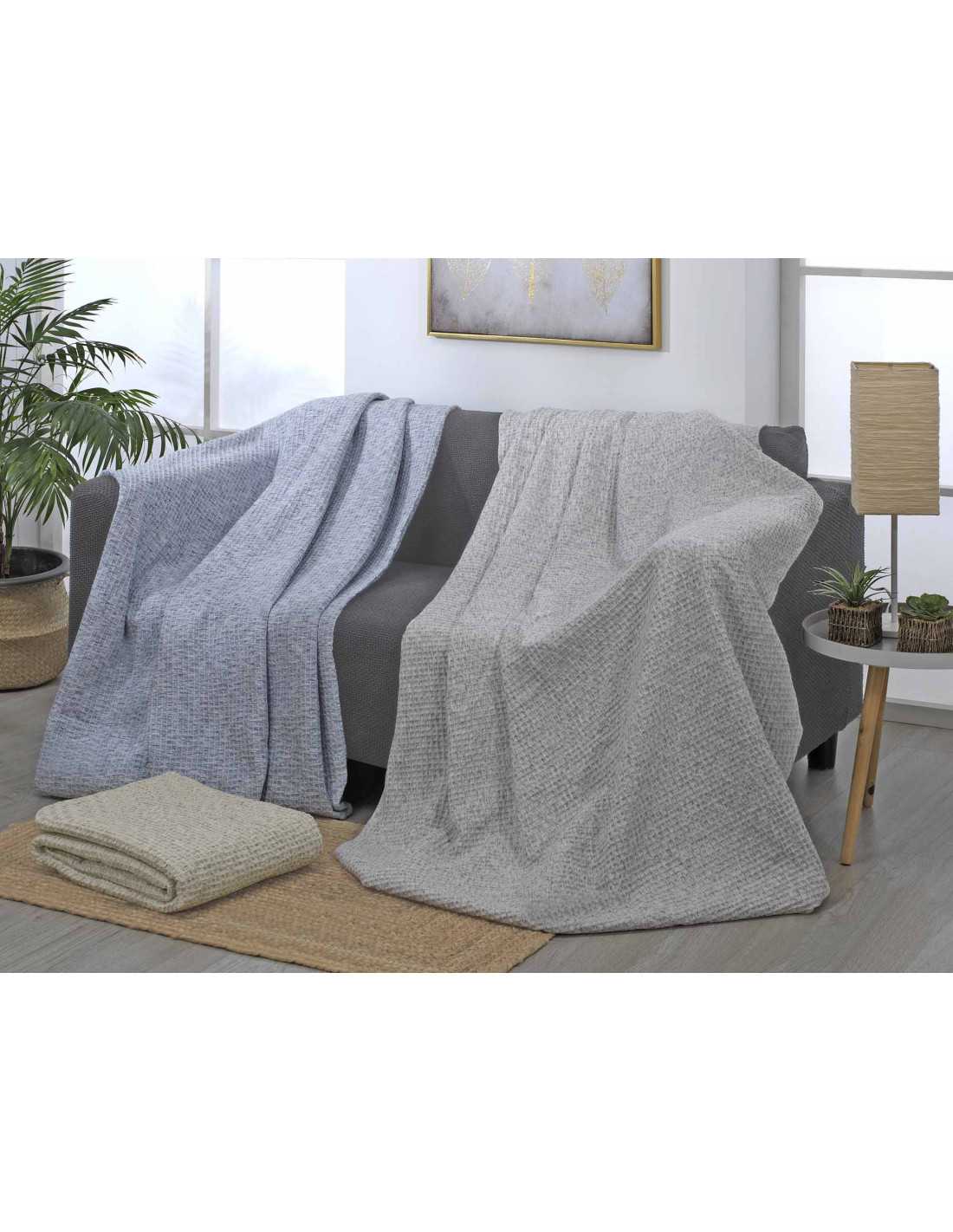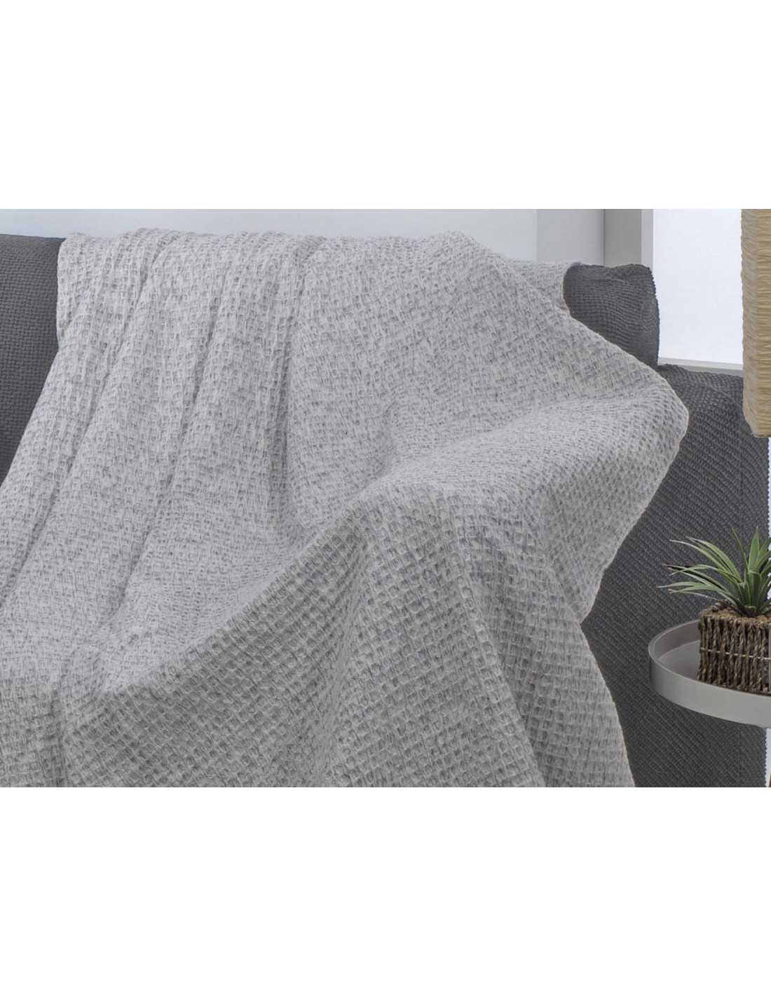 Manta decorativa fabricado em 100% algodão na cor cinza, para utilização na sala de estar ou quarto. Disponível em 3 cores.