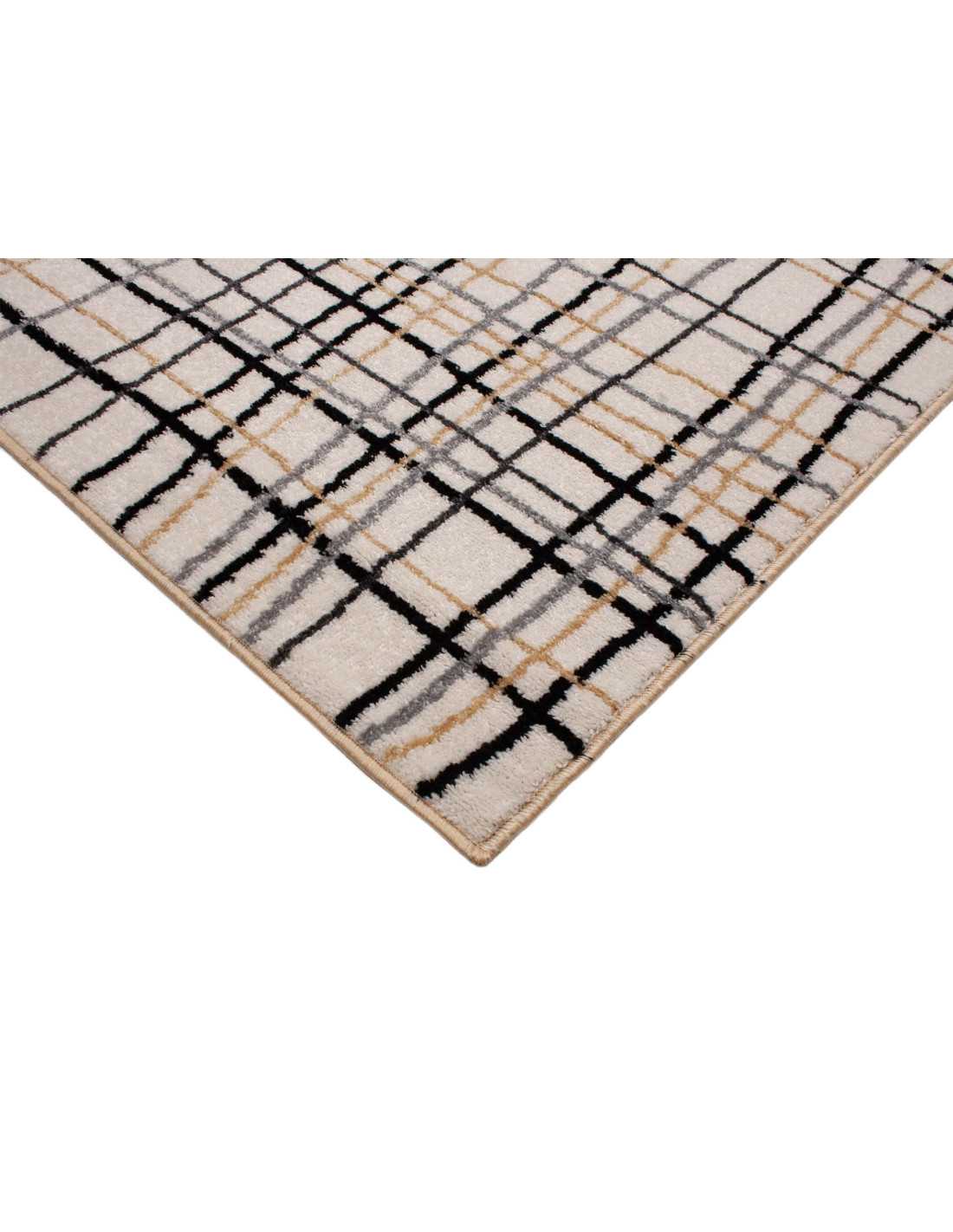Raquel é um tapete para sala de estar e quarto com um design moderno de linhas sobre um fundo bege com linhas em preto, cinza e bege escuro. Um tapete que servirá para decorar qualquer divisão da sua casa. É feito de polipropileno de alta qualidade com pêlo curto.